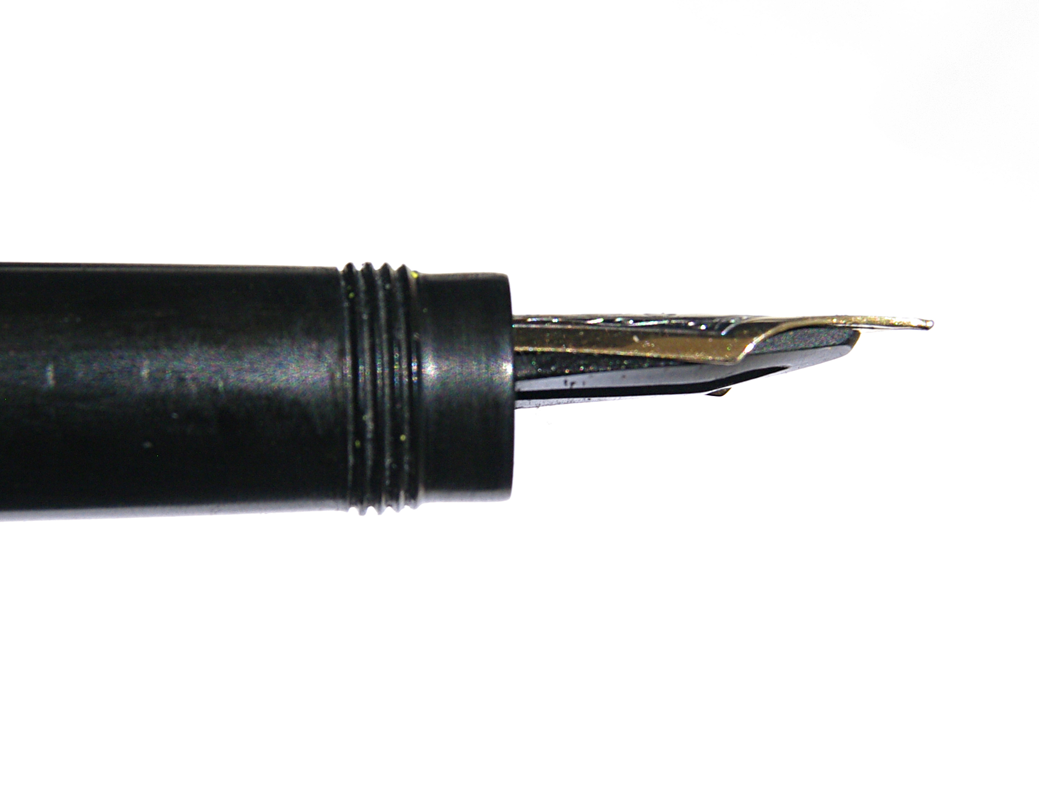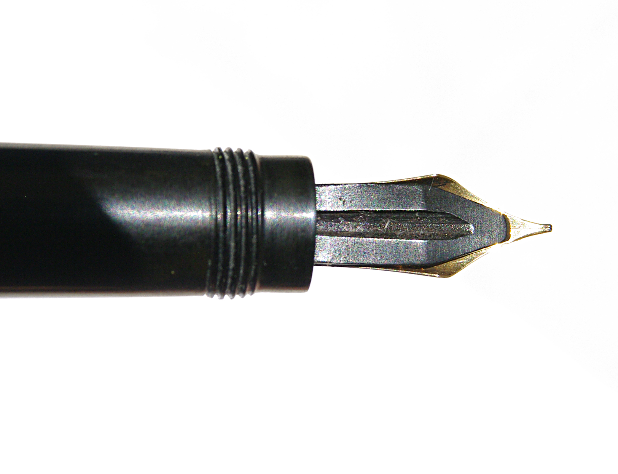 Purtroppo il modello in mio possesso manca il cappuccio ed il pennino, spero di trovarli, è una penna molto interessante, somiglia alle MB rientranti e l'alimentatore ha un canale centrale dove presuppongo serva a fermare il cappuccio fornito di uno spillo centrale per evitare che si chiuda col pennino aperto come in uso sulle Rouge et Noir.