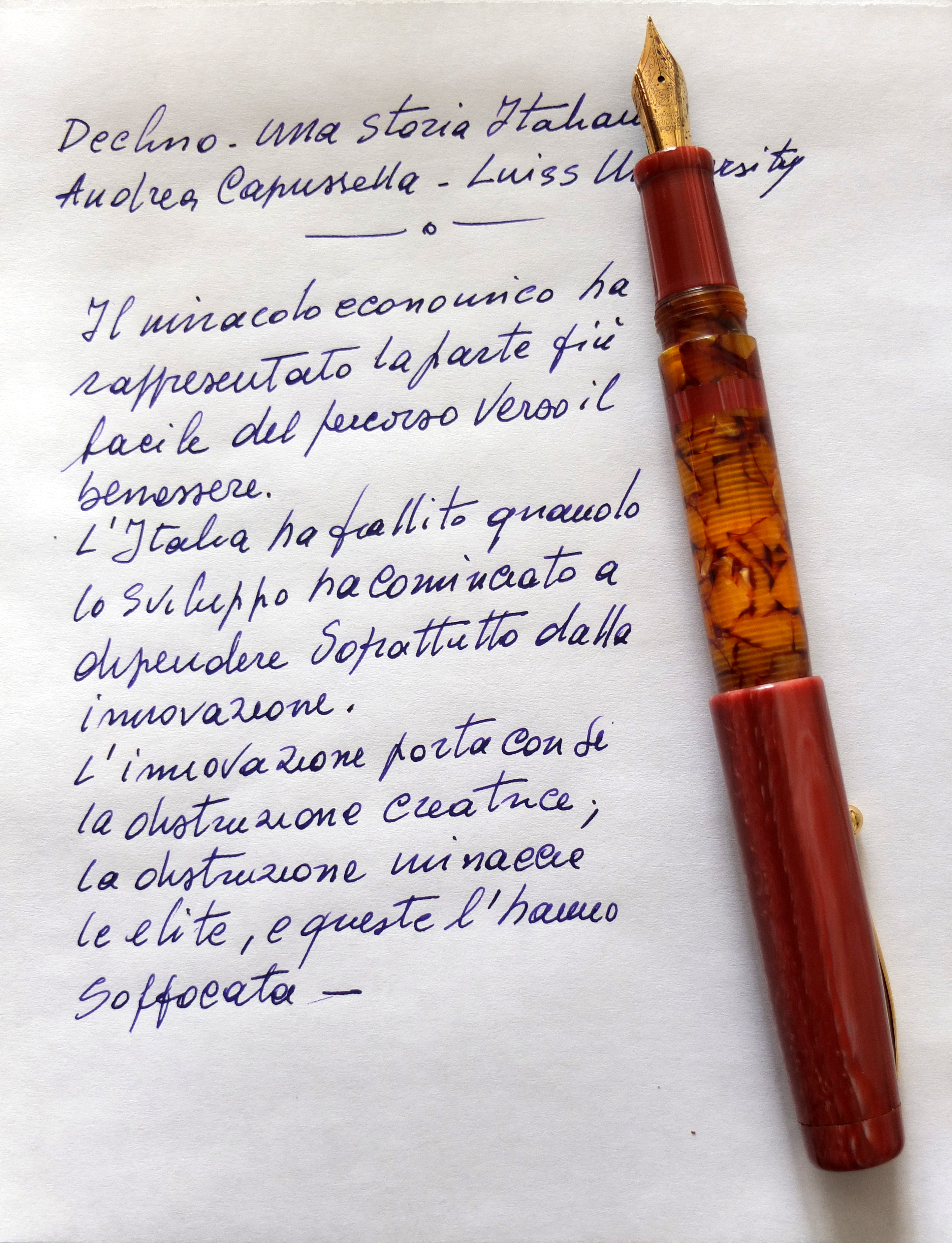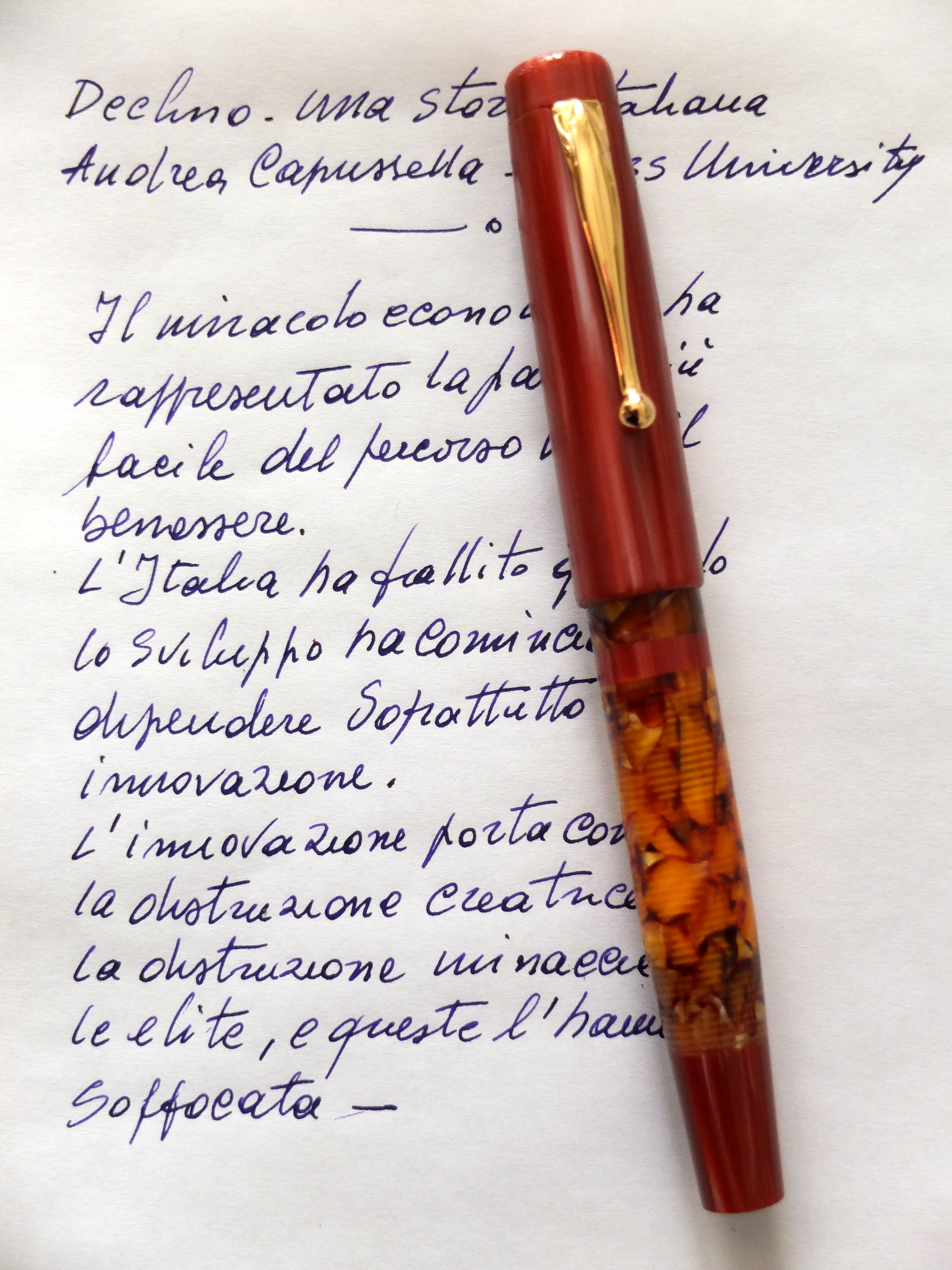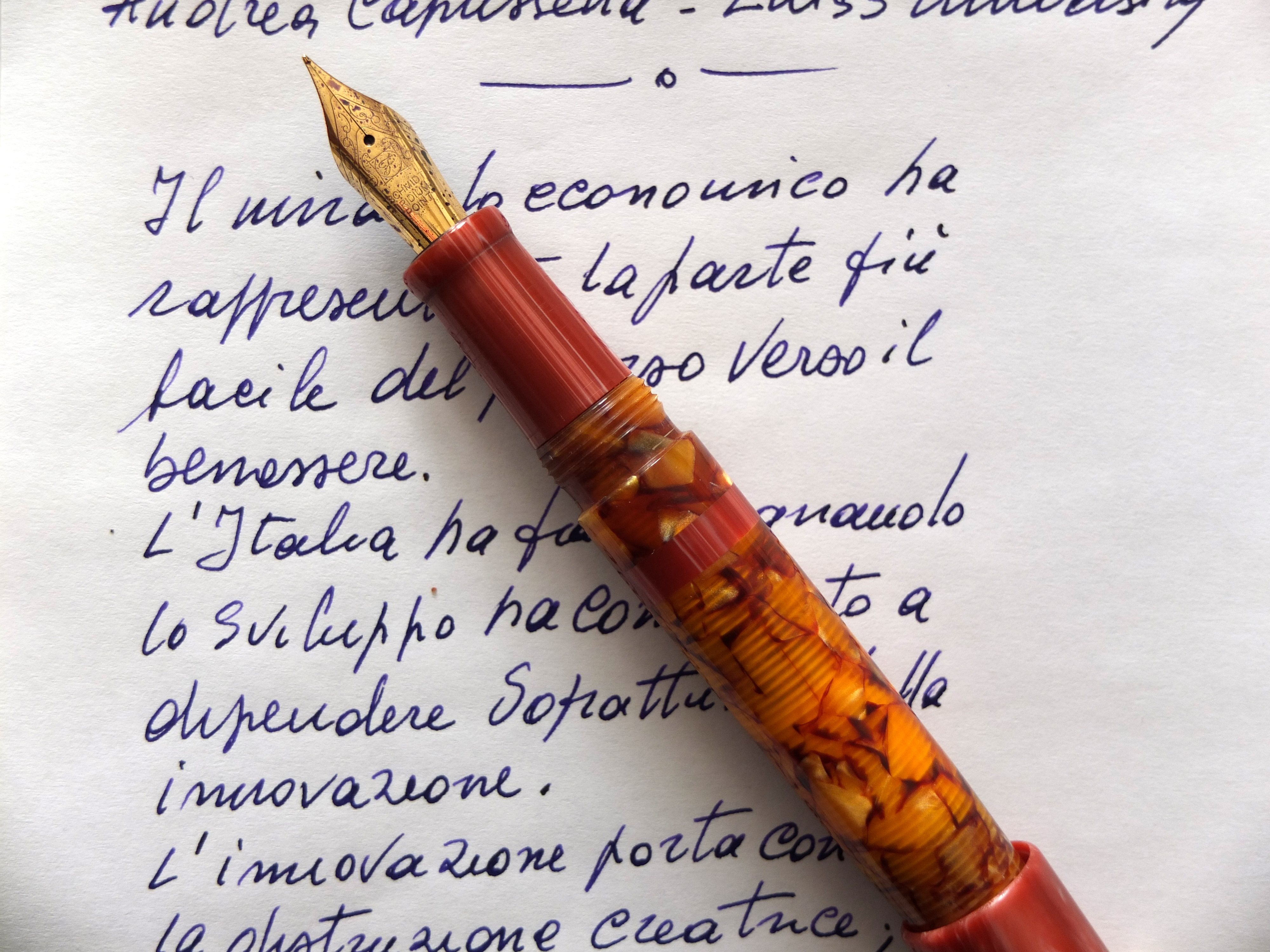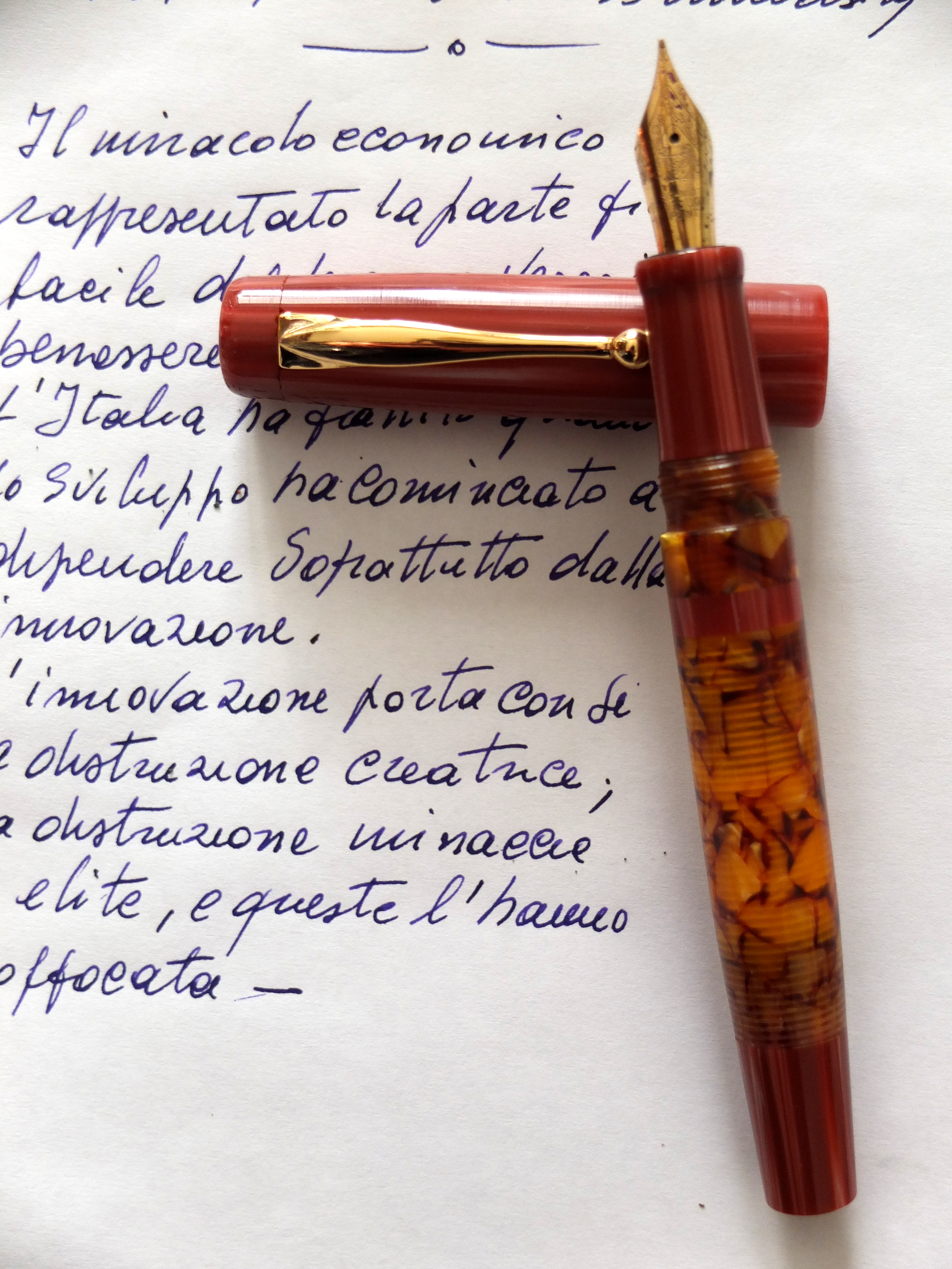 Un mio acquisto di qualche mese fa di una penna nuova, realizzata in celluloide da un validissimo tecnico di Legnano, il dott. Roberto D'Antonio.
