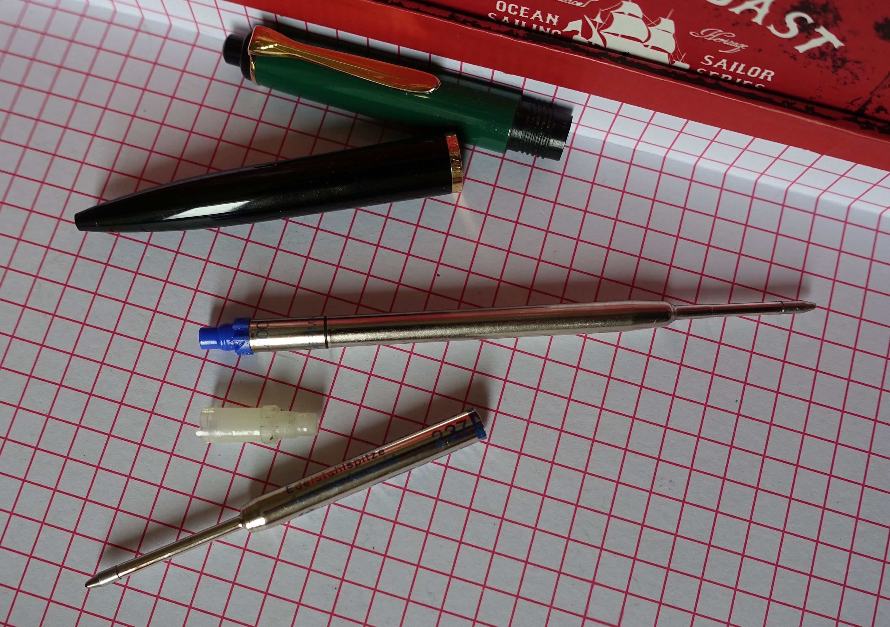 Il refill montato era un introvabile 237 con estensione in nylon ormai consumata, per farla scrivere ho dovuto modificare un refill tipo Parker tagliando e inserendo un pezzo di quello vecchio, tutto funziona alla perfezione.