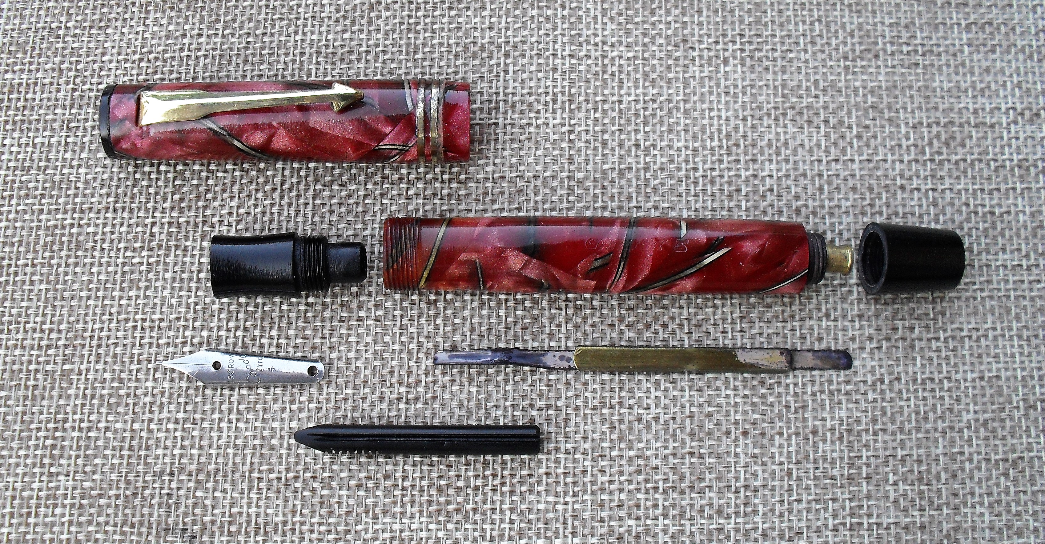 Vi propongo qualche immagine, sperando che gli esperti possano arricchirle con alcune note storiche, che se non mancano, sul nostro meraviglioso wiki, circa la Condor S, non mi hanno consentito d'identificare la penna anonima, caratterizzata da un pennino "Gladio", da una clip di forme molto simili alle classiche Omas e da un curioso alimentatore con canale elicoidale.