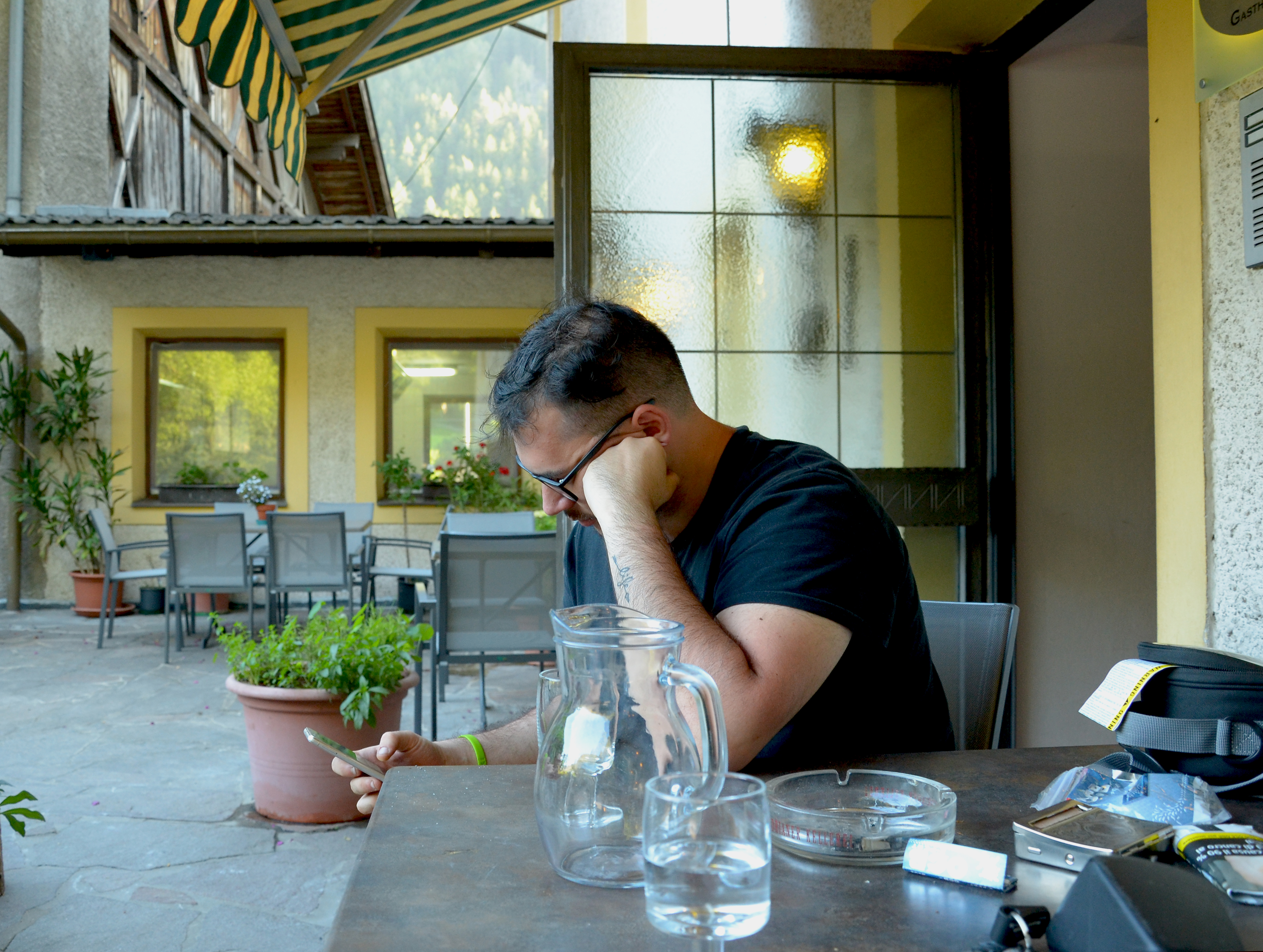 Io seduto fuori al bar