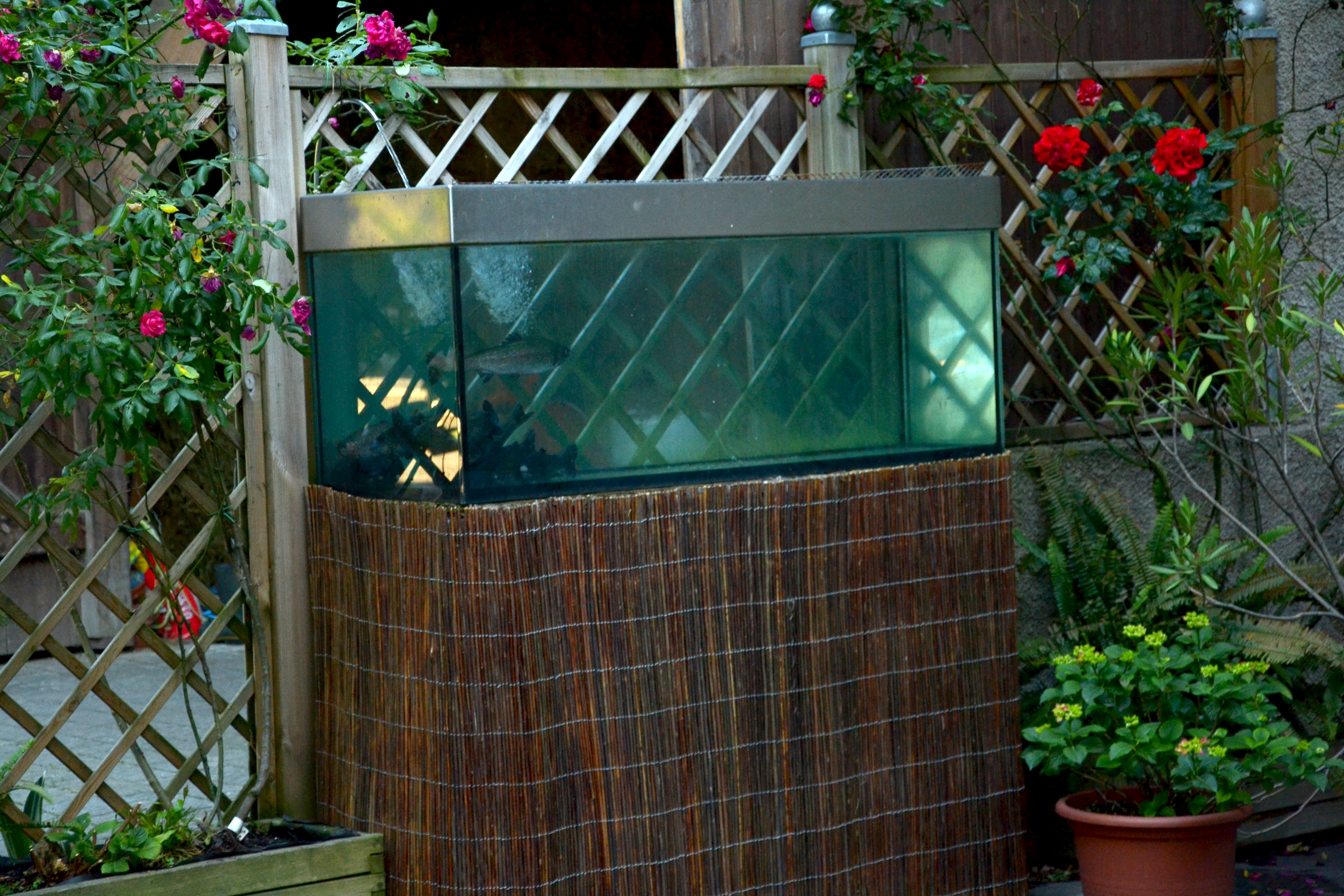 una vasca con le trote alimentata da una sorgente d'acqua meravigliosa