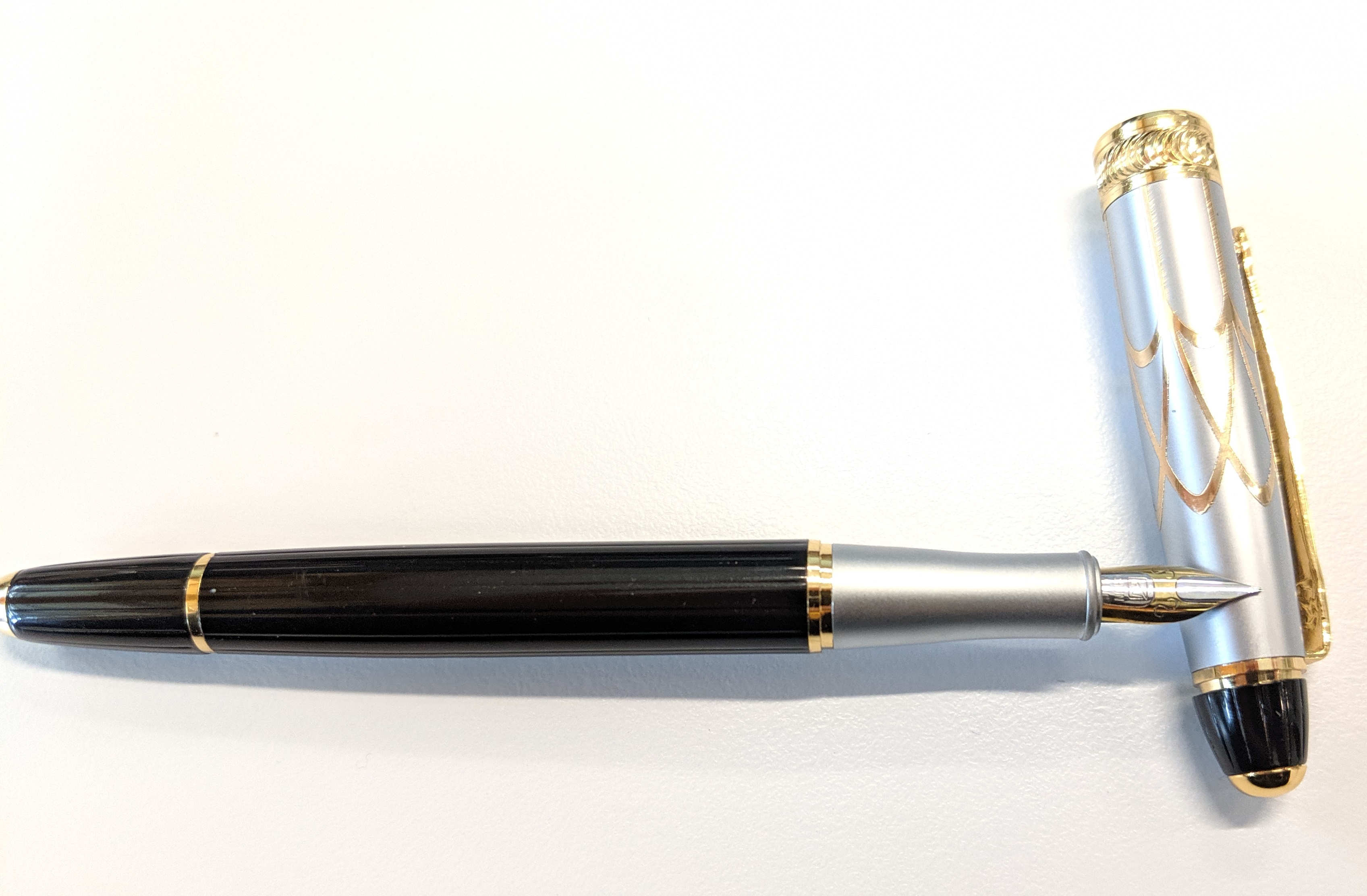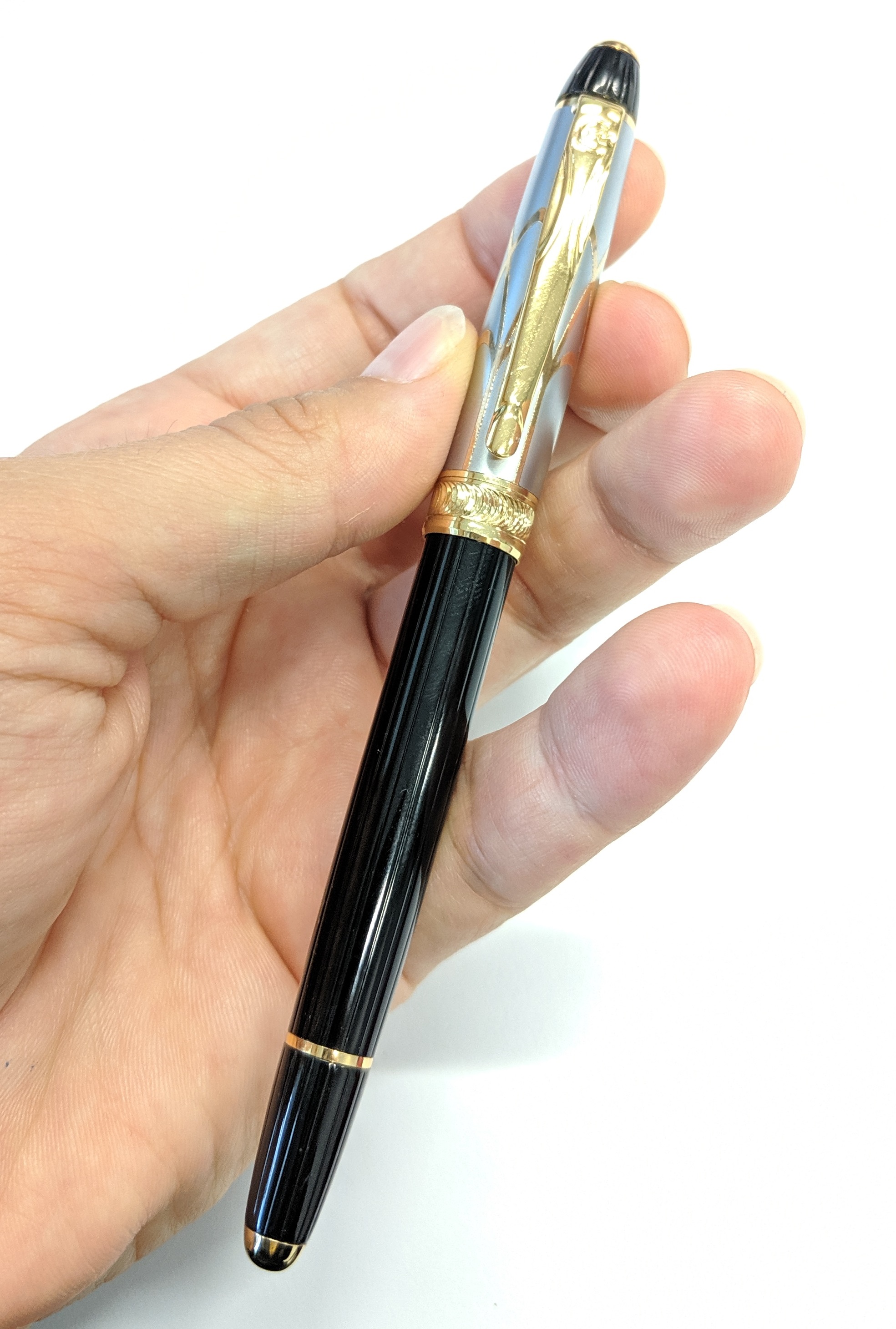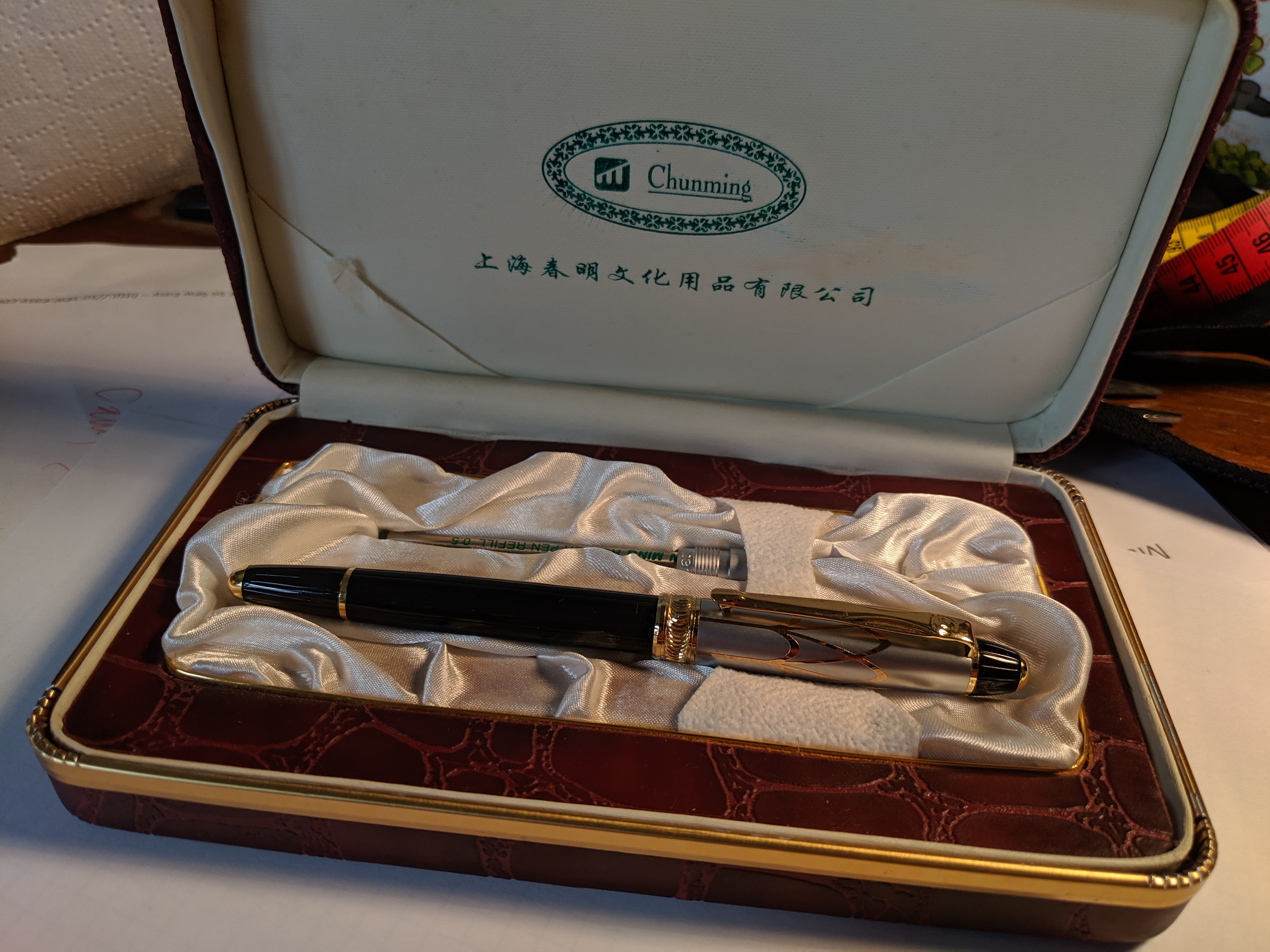 Con un po' di ricerca ho capito che Chun Ming fa fermagli per penne, ma sul loro sito non hanno penne ma solo fermagli. La qualità è così così ma scrive bene! Tutta la penna è di plastica, comprese le rifiniture della scatola di simil-coccodrillo rossa.