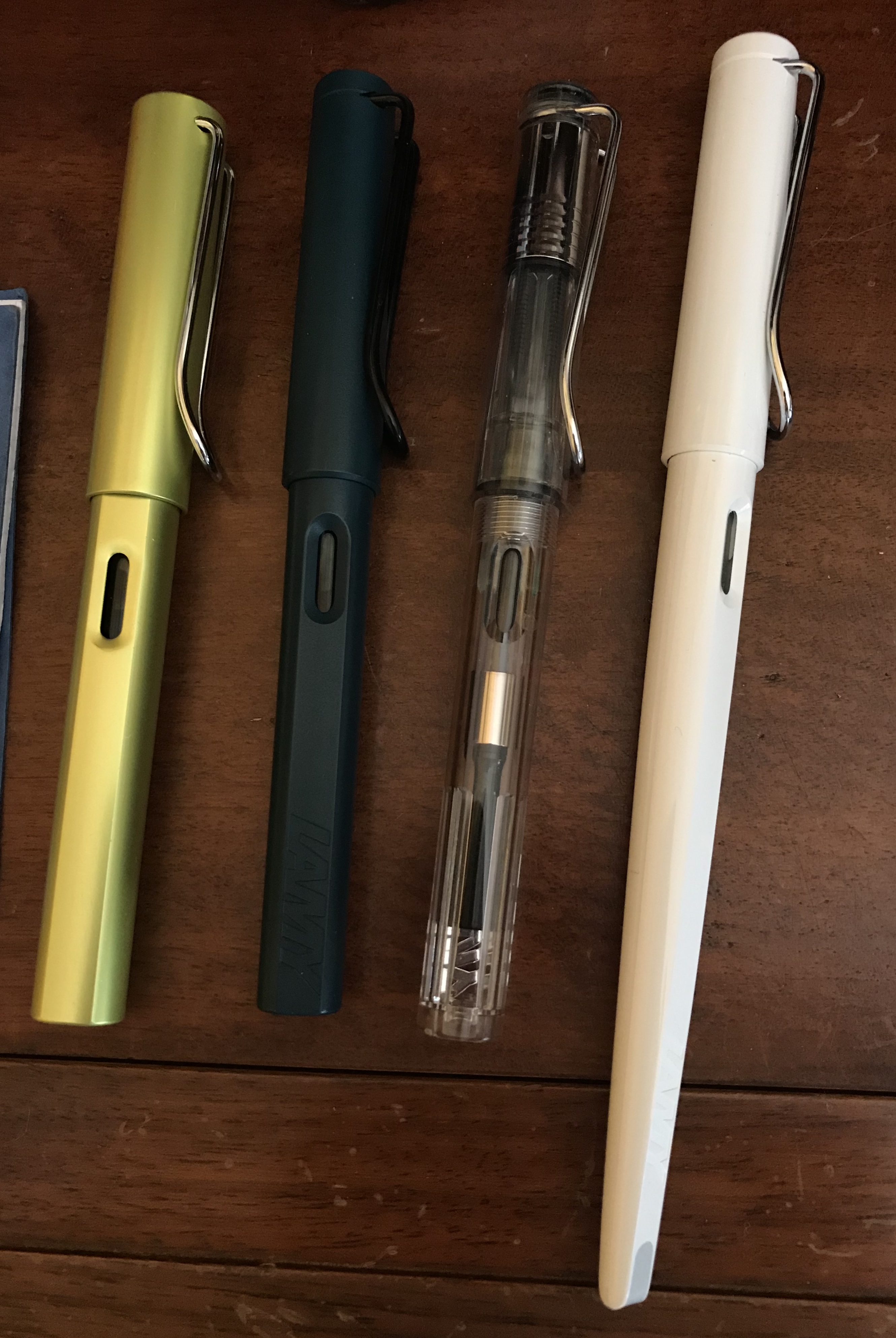 Lamy: Safari alluminio Charged Green, Safari Blu Petrol, Safari Vista e Joy. Le prime con pennino EF, mentre le ultime rispettivamente con punta da 1,1 mm e da 1,5 mm