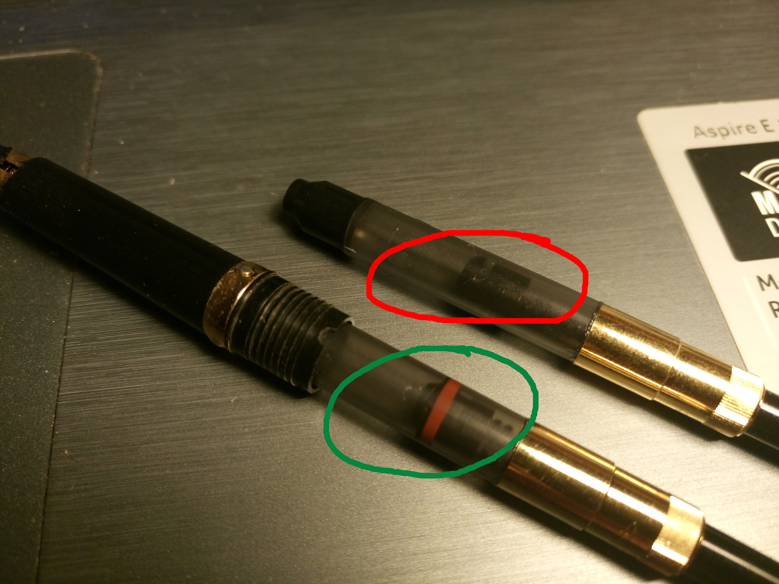 Nel vasetto dei "rottami" - che in piena "sindrome da rigattiere" tengo perché "non si sa mai"... e in effetti stavolta è stato il caso! - ho per caso visto un vecchio converter Parker rotto: era nella Frontier che avevo dato a mia figlia in quarta elementare, dopodiché ovviamente un suo compagno bestia ci ha giocato con violenza inane e l'ha troncato (e vorrei sapere che fatto animale era, visto che ho personalmente verificato quanto sia solido il converter!).