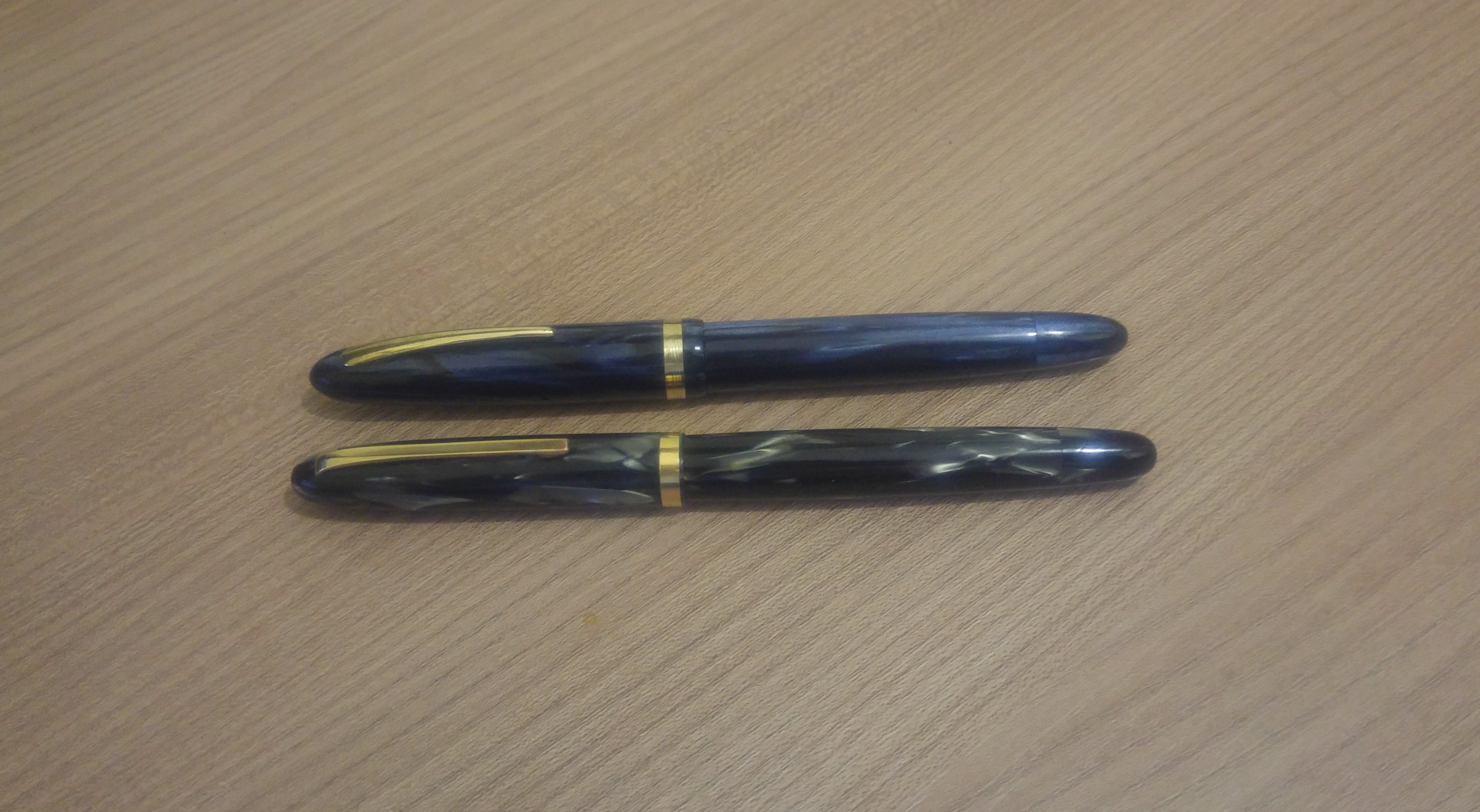 La trovo una bella interpretazione della OMAS 556/S in celluloide, rispetto a questa è solo un po' più cicciottella.