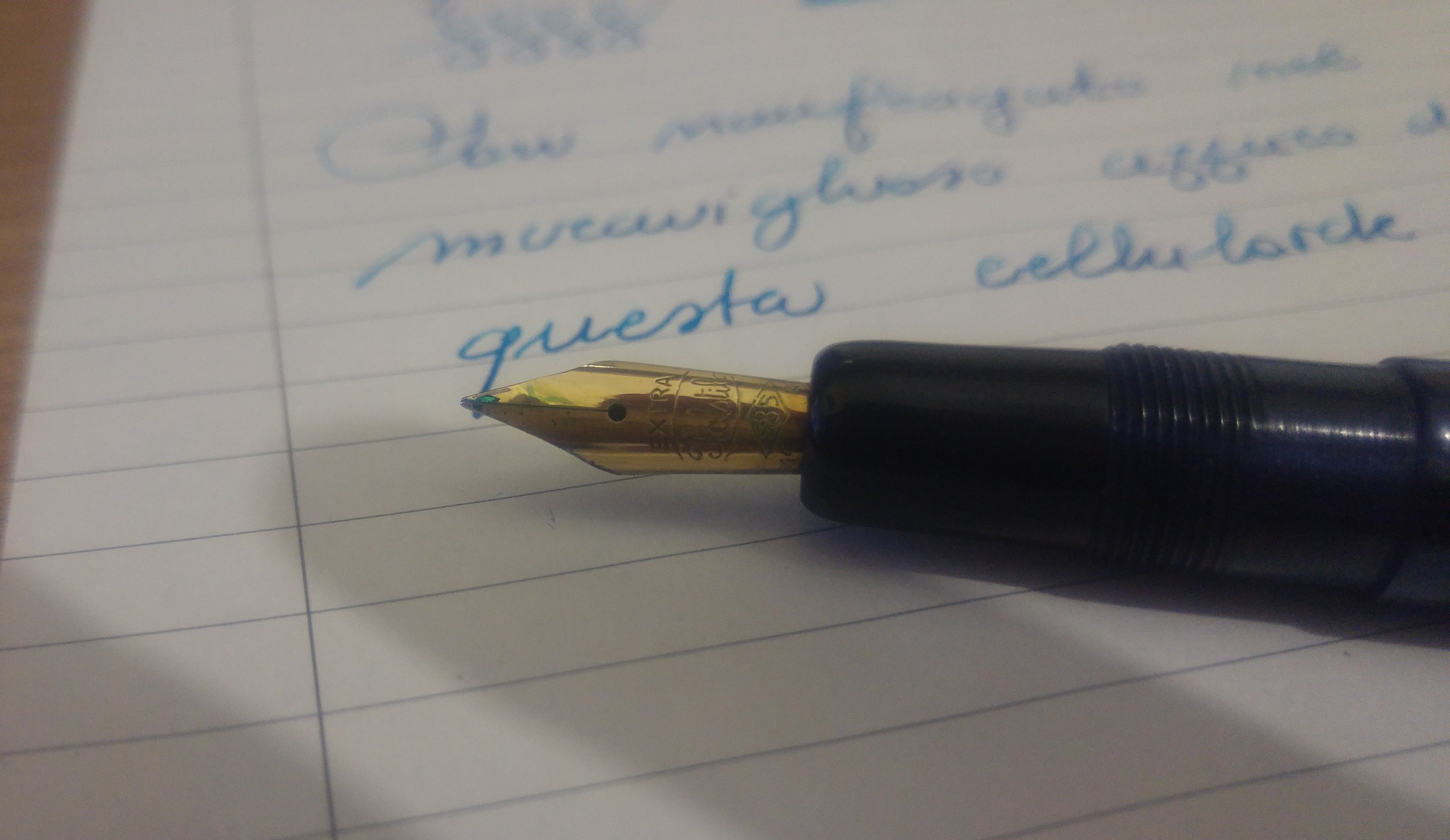 Flusso ben regolato con un tratto Medio, pennino poco flessibile ma piacevolmente morbido.