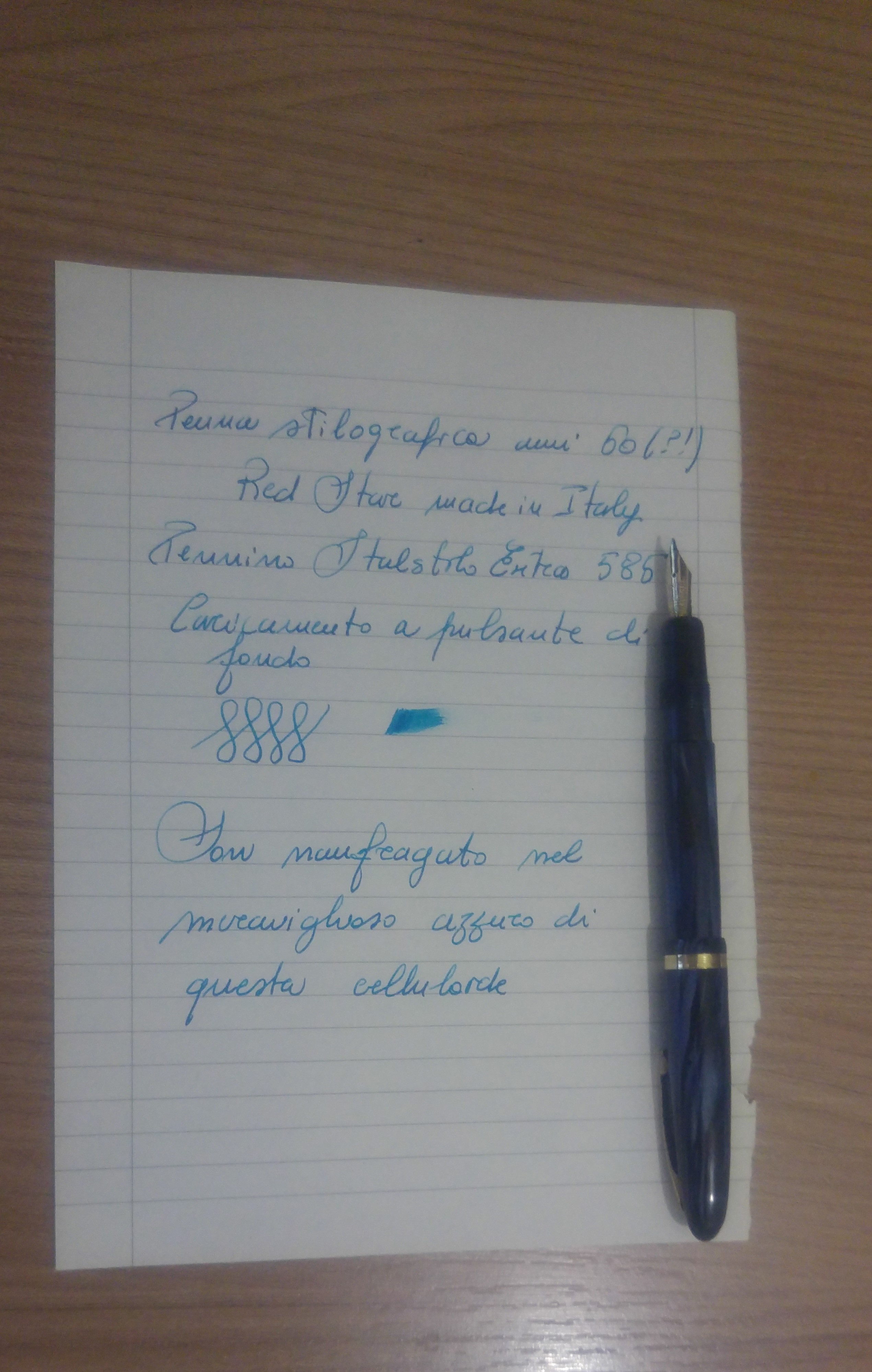 Anche lei con un bel pennino Italstilo Extra in oro14 k e con una scritta Red Star sul fusto ben leggibile, mentre l'imprint di Made In Italy è meno chiaro.
