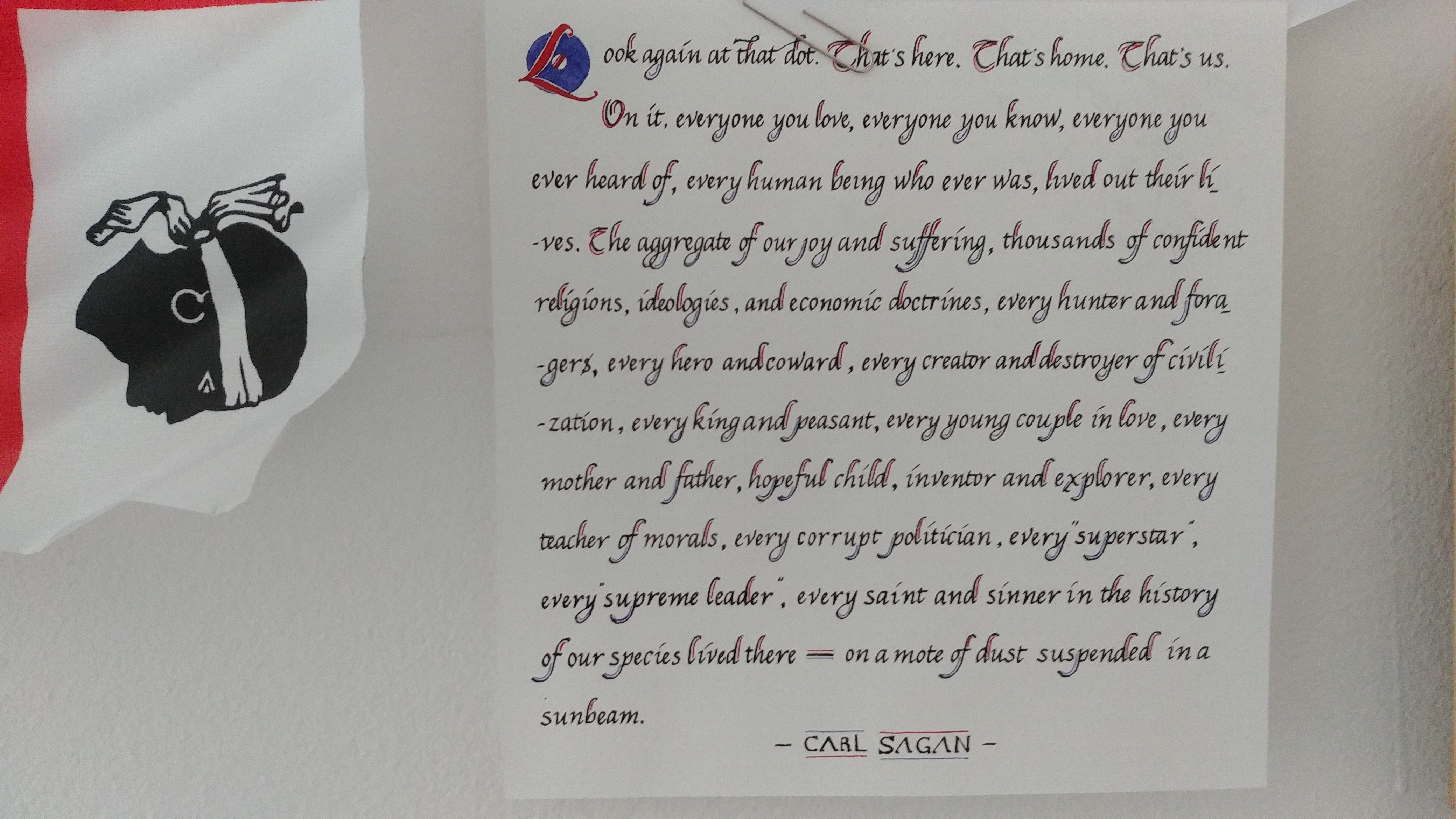Sagan stesso scrisse un libro intitolato come la ben nota fotografia, e in questo una celebre sezione. Ho deciso di riportarne un breve brano accanto ai quattro mori e sotto la rosetta de sa Sartiglia, in un angolino di casa in una nuova casa.