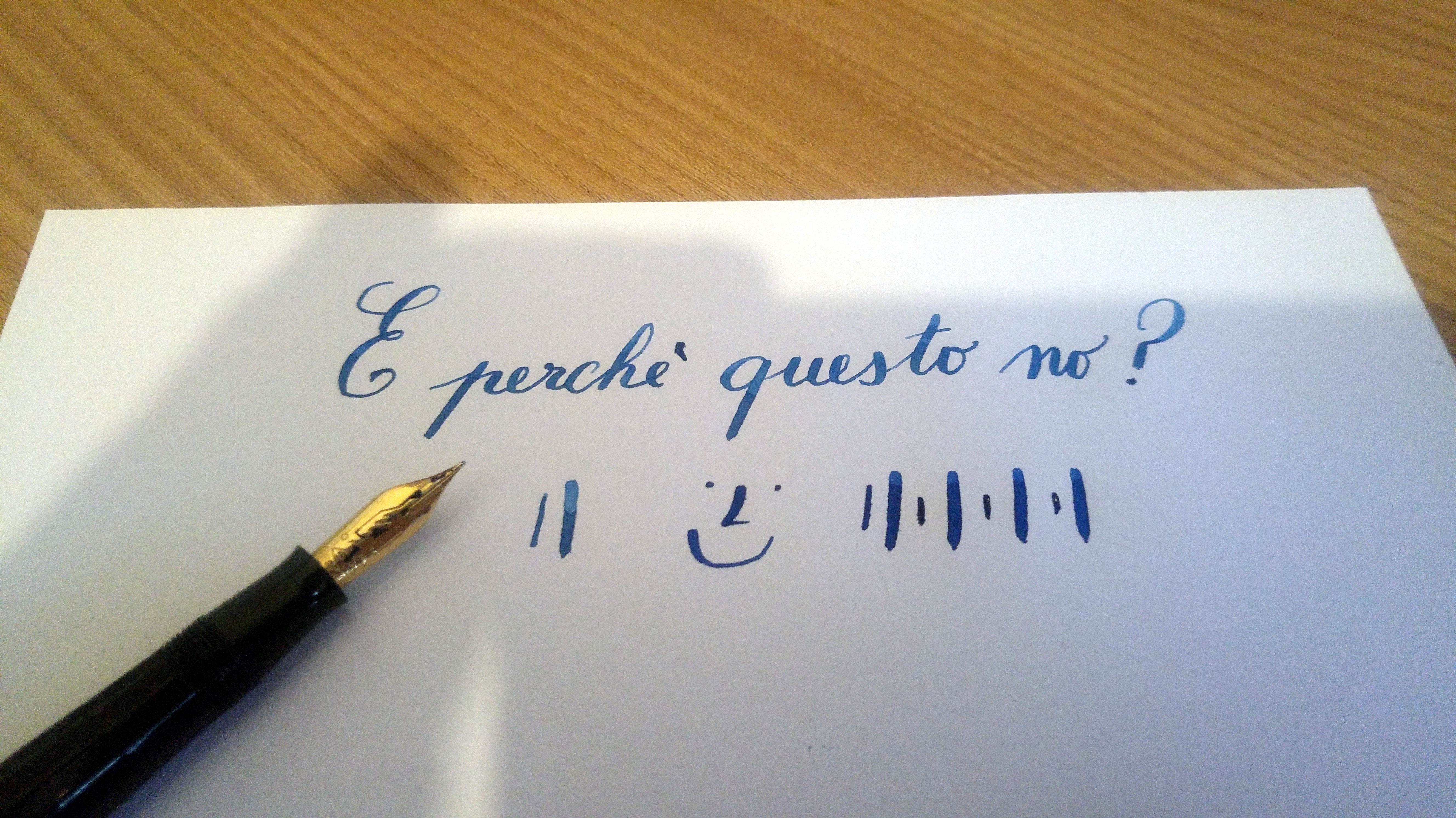 In ogni caso mi sono trovata bene con questa penna indiana... l'odore di resina sta svanendo, e il convertitore di serie che é un po' scranscio. Devo vedere come risolvere il problema della secchezza che di tanto in tanto mi fa fare dei binari, se dovuto all'inchiostro che sto usando o se devo darle una seconda pulita più a fondo.