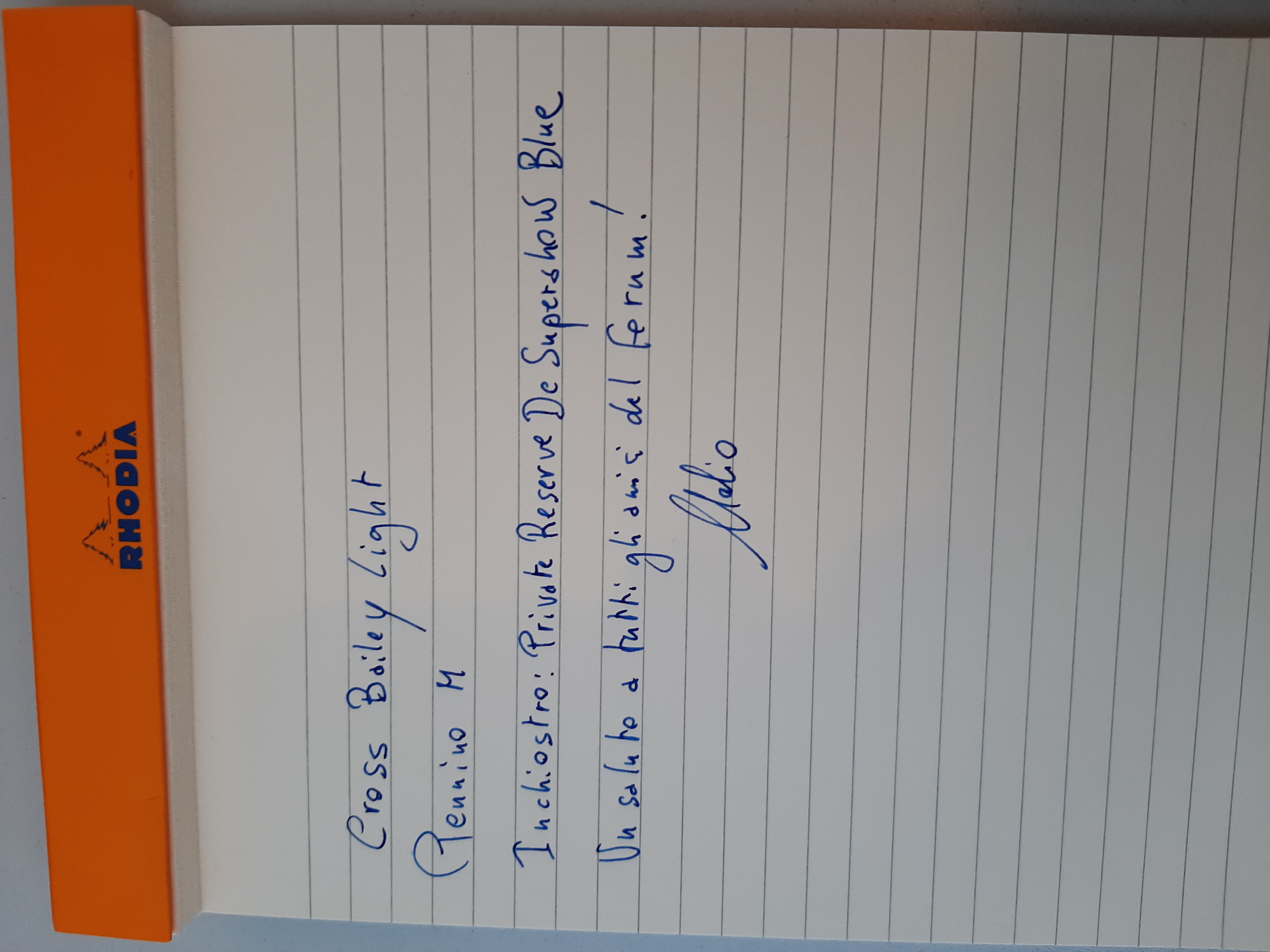 Il pennino della Cross Bailey Light e Cross Bailey sono differenti. Quello postato è di una Light, quello nel link d in una Bailey.Gargaros ha scritto: ↑domenica 25 aprile 2021, 19:43Voglio sentire assolutamente questa storia. Se mi passi i link del video che hai visto, magari via MP, te ne sarei grato.Silvia1974 ha scritto: ↑domenica 25 aprile 2021, 19:18 Per la vite sono curiosa: magari nel tempo hanno variato qualcosa. Pensa che una recensione Youtube che ho visto diceva addirittura che le penne prese su Amazon avevano una dicitura diversa sulla clip, se non ho inteso male: sulla tua c’è inciso CROSS? Hai sulla clip o vicino una scritta “Amazon basics” per caso? Perché questa cosa mi pare strana assai