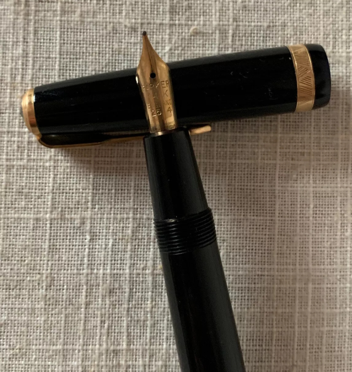 Confermo che è una Parker English Duofold, dal pennino risulta essere un modello Standard. Belle penne