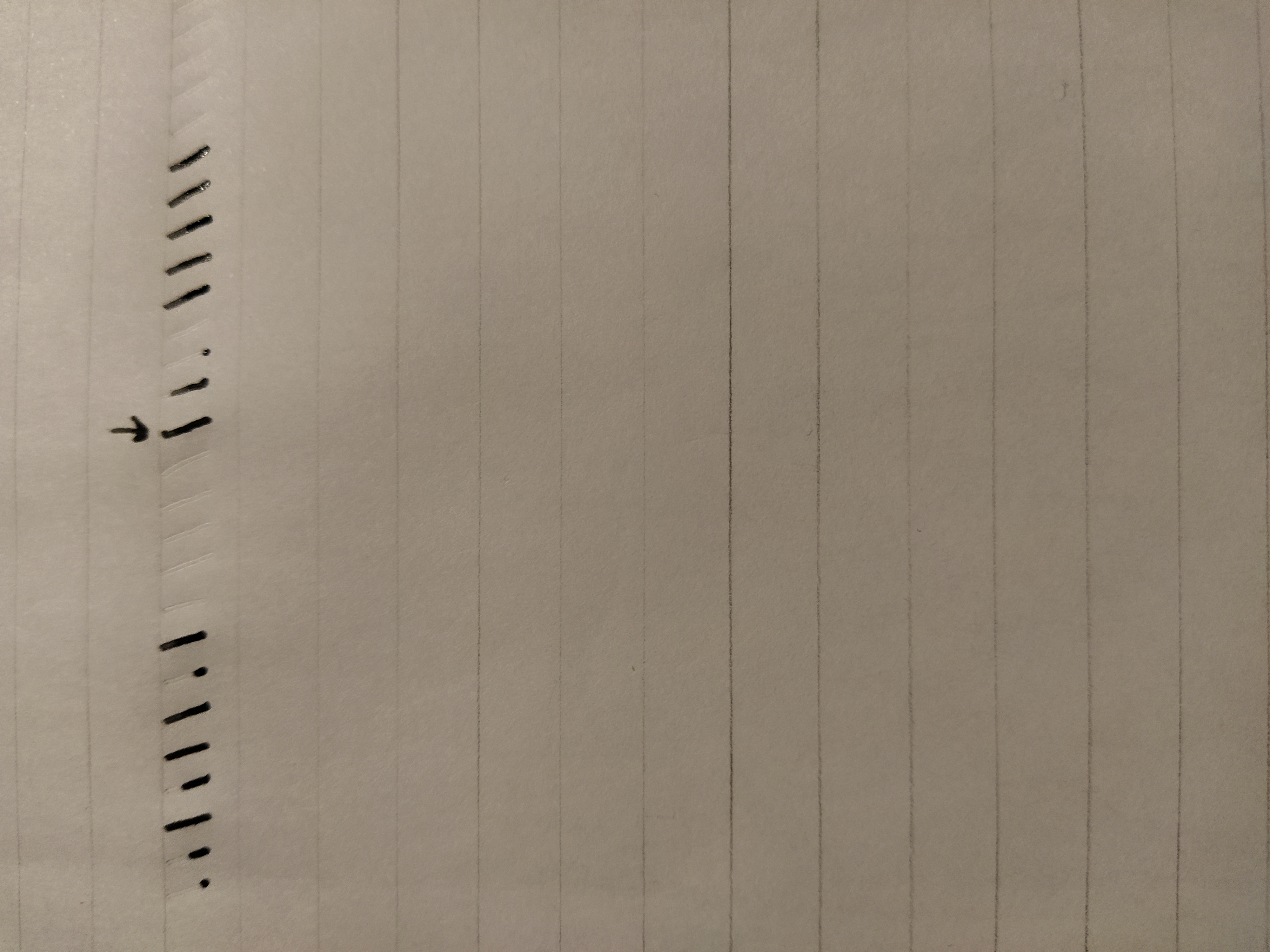 Ho tracciato linee partendo dalla linea in alto (credo) esercitando la stessa pressione e la stessa inclinazione. Dove ho messo la freccia ho tenuto premuto il pennino per qualche istante.
