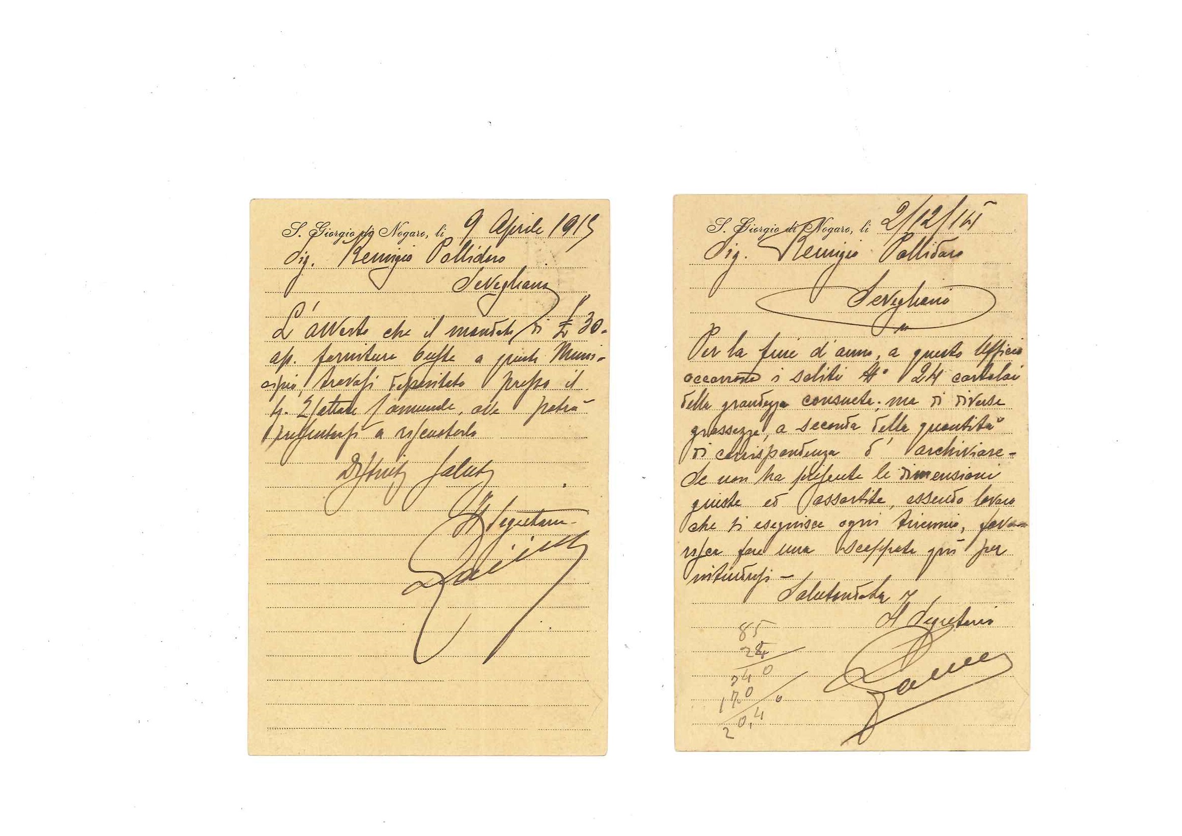 Non so per quale mistero della vita la cartolina di Rodolfo sia arrivata a Palermo e, 100 anni dopo, ritornata a San Giorgio da dove era partita. Altro mistero: come avrà fatto ad arrivare a Palermo in solo tre giorni? Spedita il giorno 11/05/1916 è arrivata il giorno 13/05/1916 tenendo conto del periodo di guerra. Le poste moderne dovrebbero arrossire dalla vergogna.