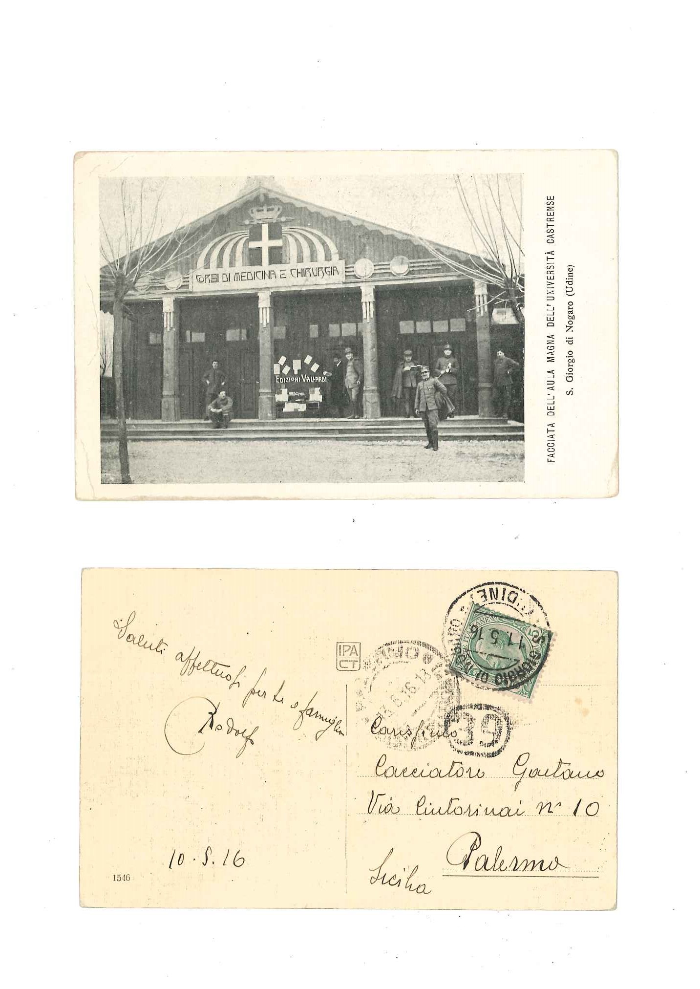 Buongiorno e grazie a tutti, a completamento dell'ultimo invio allego questa cartolina spedita nel 1916 dallo studente Rodolfo che, in base agli indizi raccolti, trattasi di Pizzuto Rodolfo di Palermo