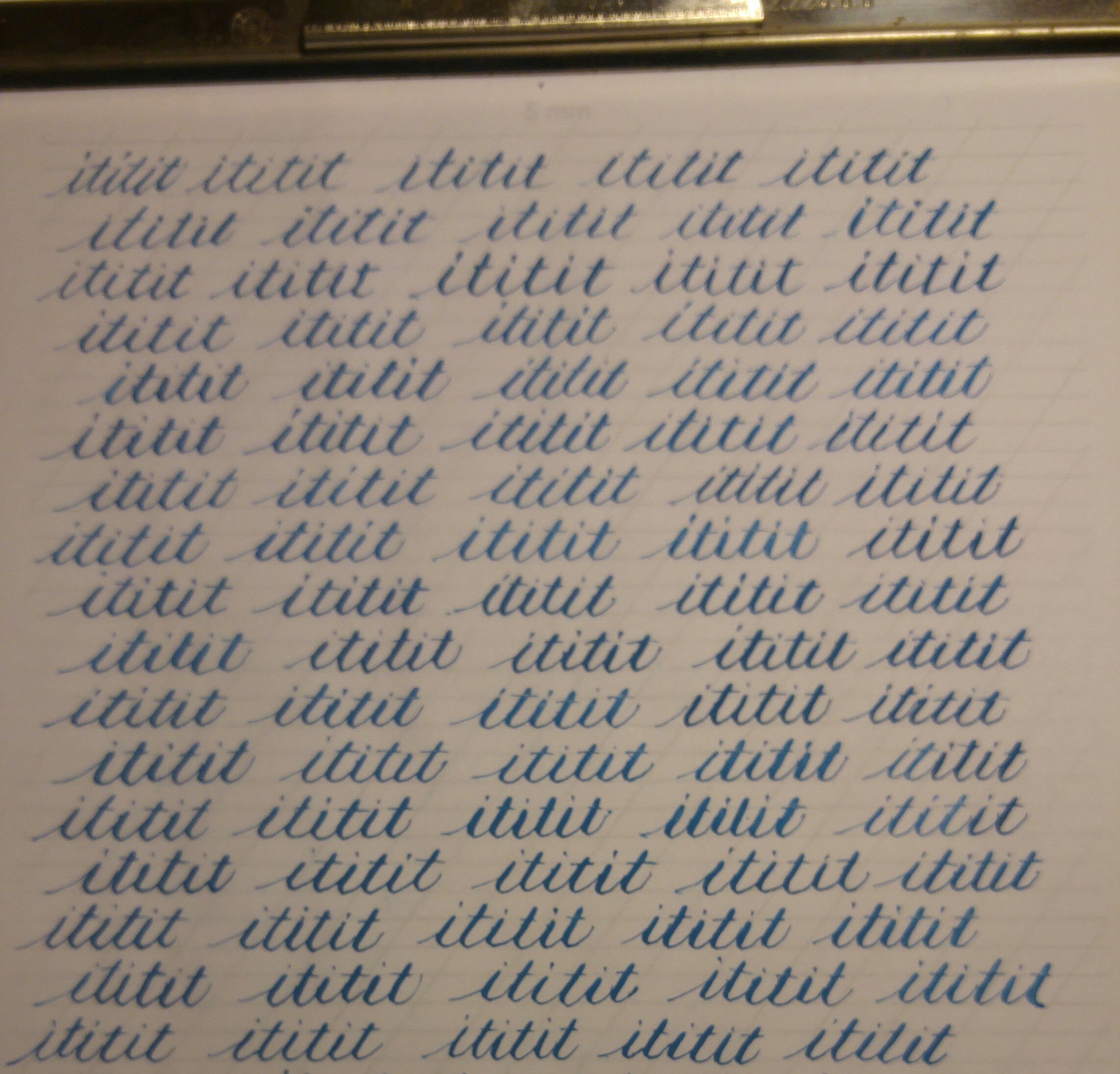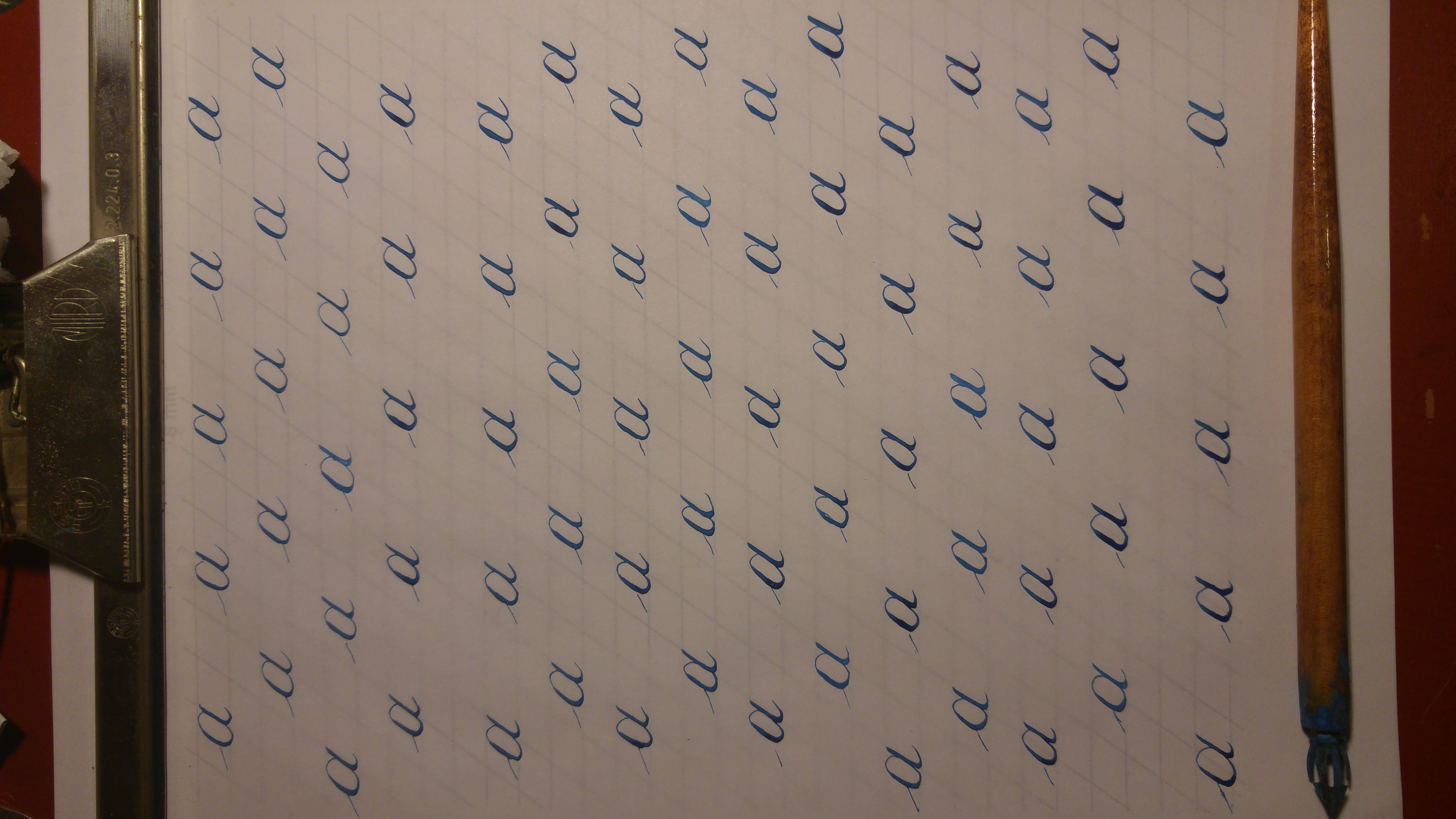 Posso chiederti che pennino utilizzi? Forse ti concede anche una maggiore dimensione delle lettere, e sarebbe un bene per imparare a calibrare il passaggio fra linee spesse e sottili.
