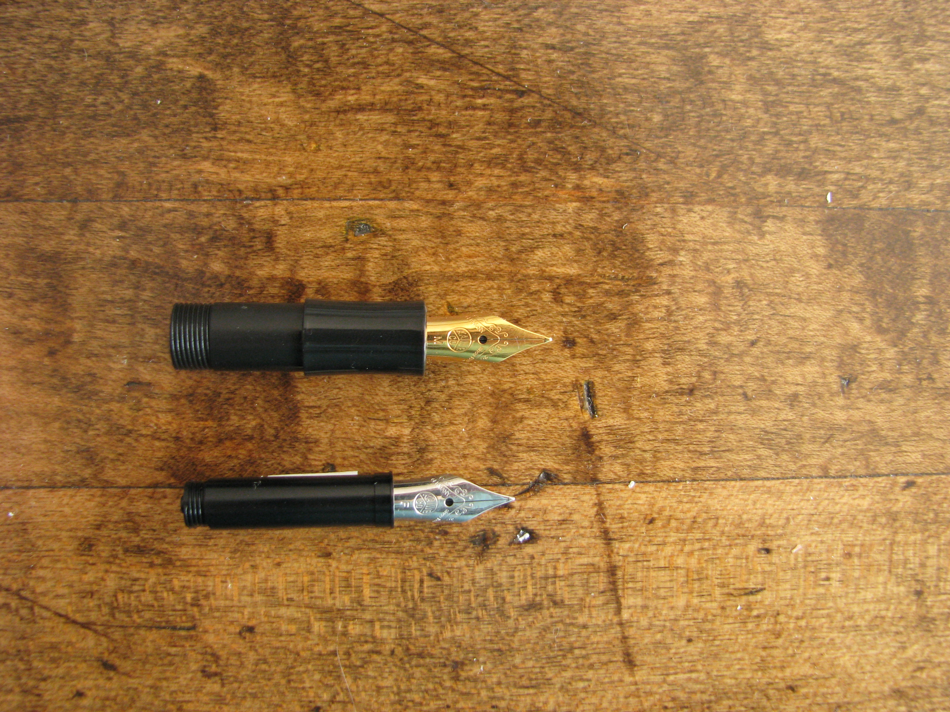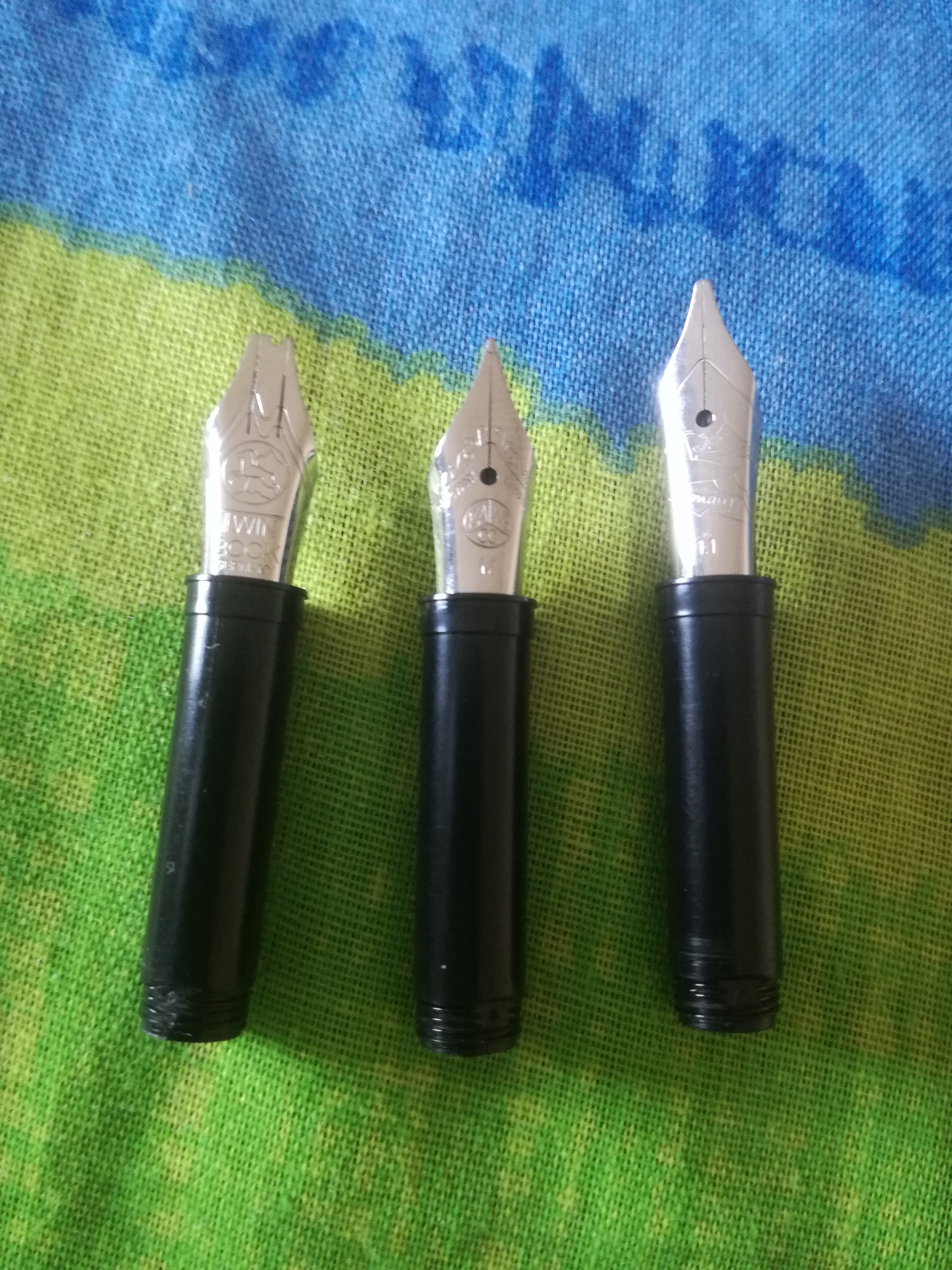 Nella foto, da sinistra a destra: Twin Nib Kaweco (come puoi vedere ha il marchio Bock); gruppo pennino Kaweco M; gruppo pennino Bock standard 1.1. Come puoi vedere gli attacchi sono identici.