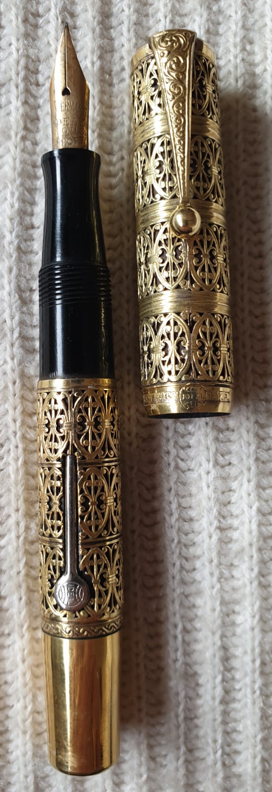 Rara parure Waterman's 52 V con lamina traforata desueta per questo modello di stilografica.