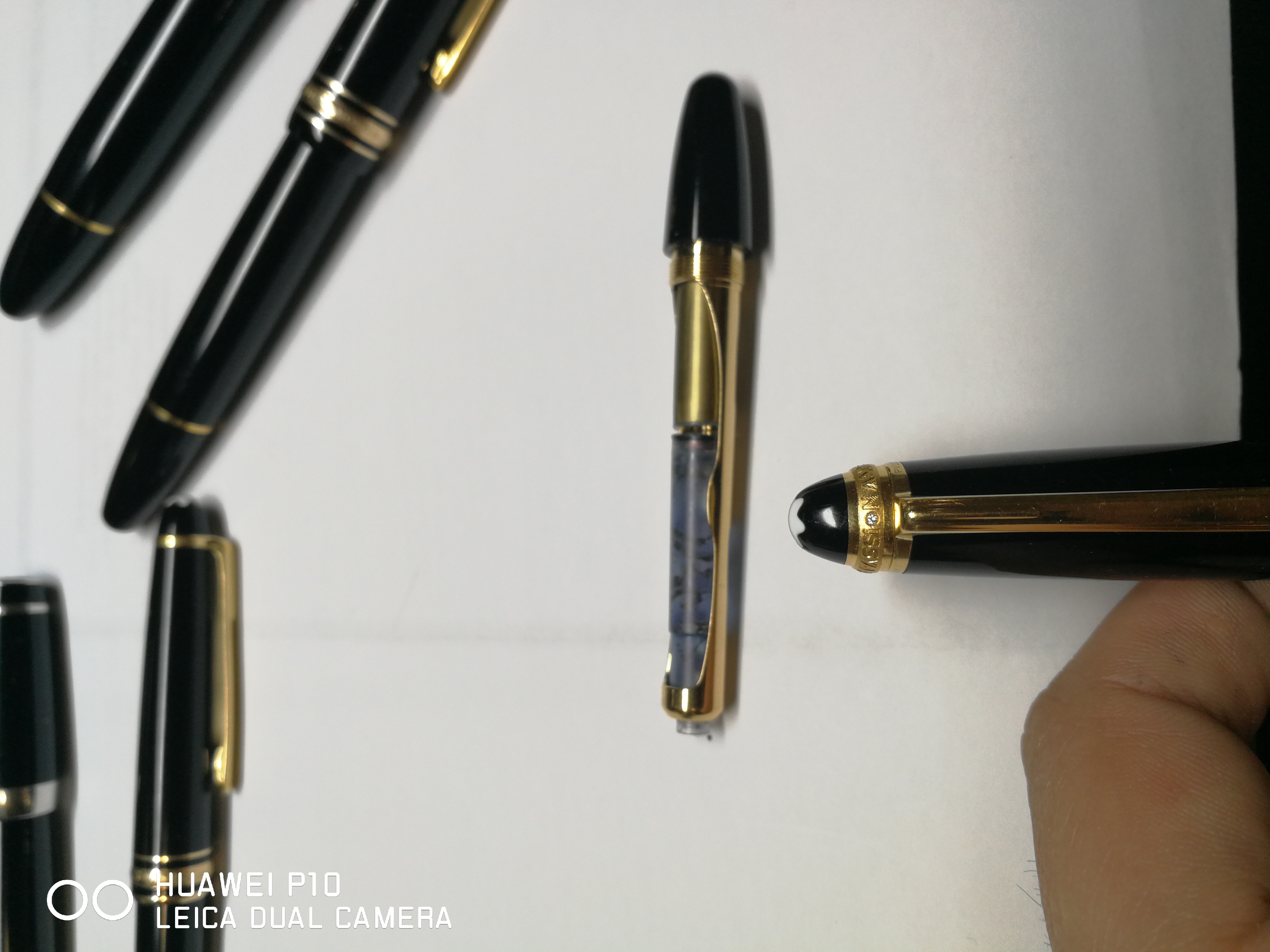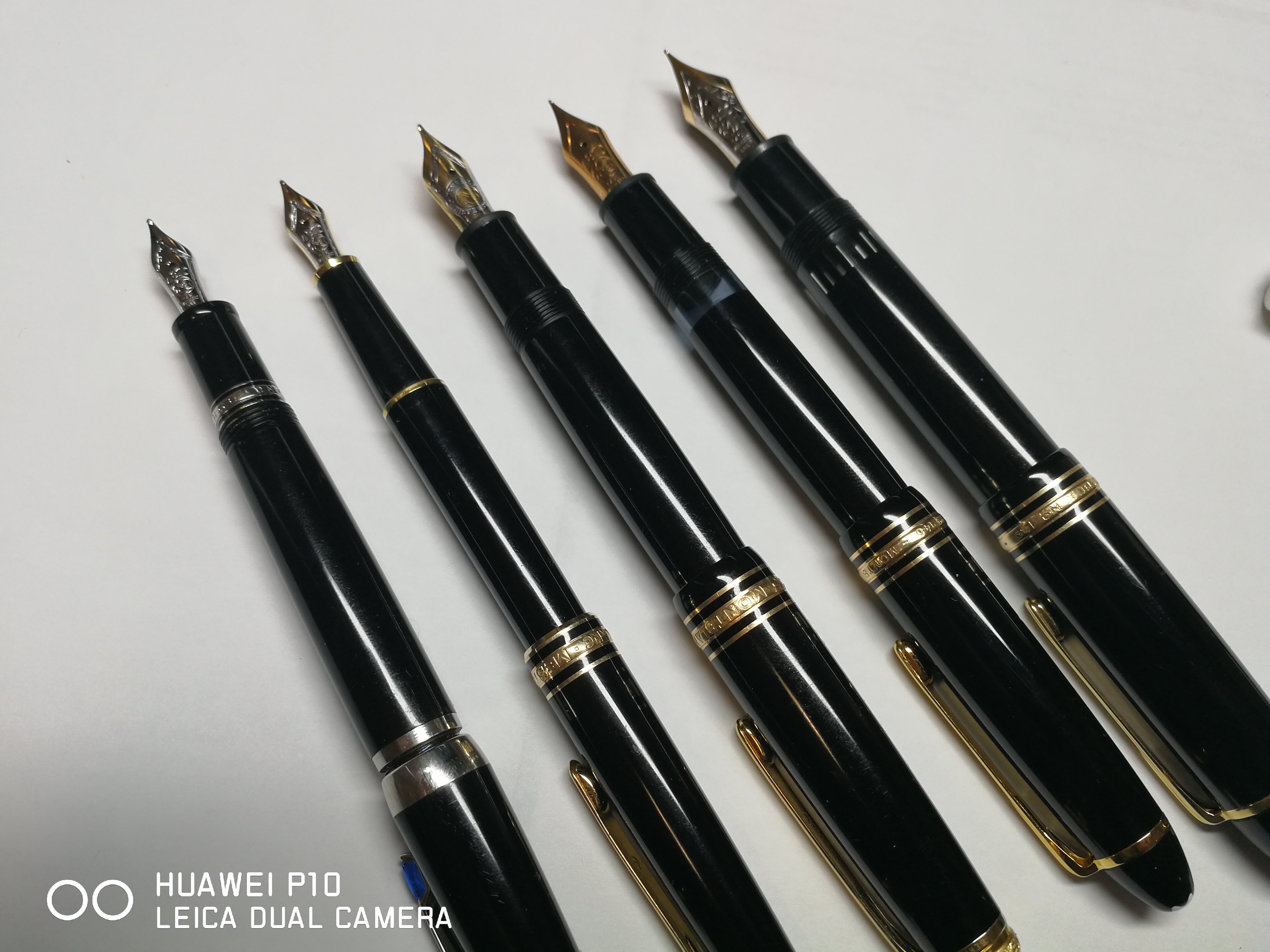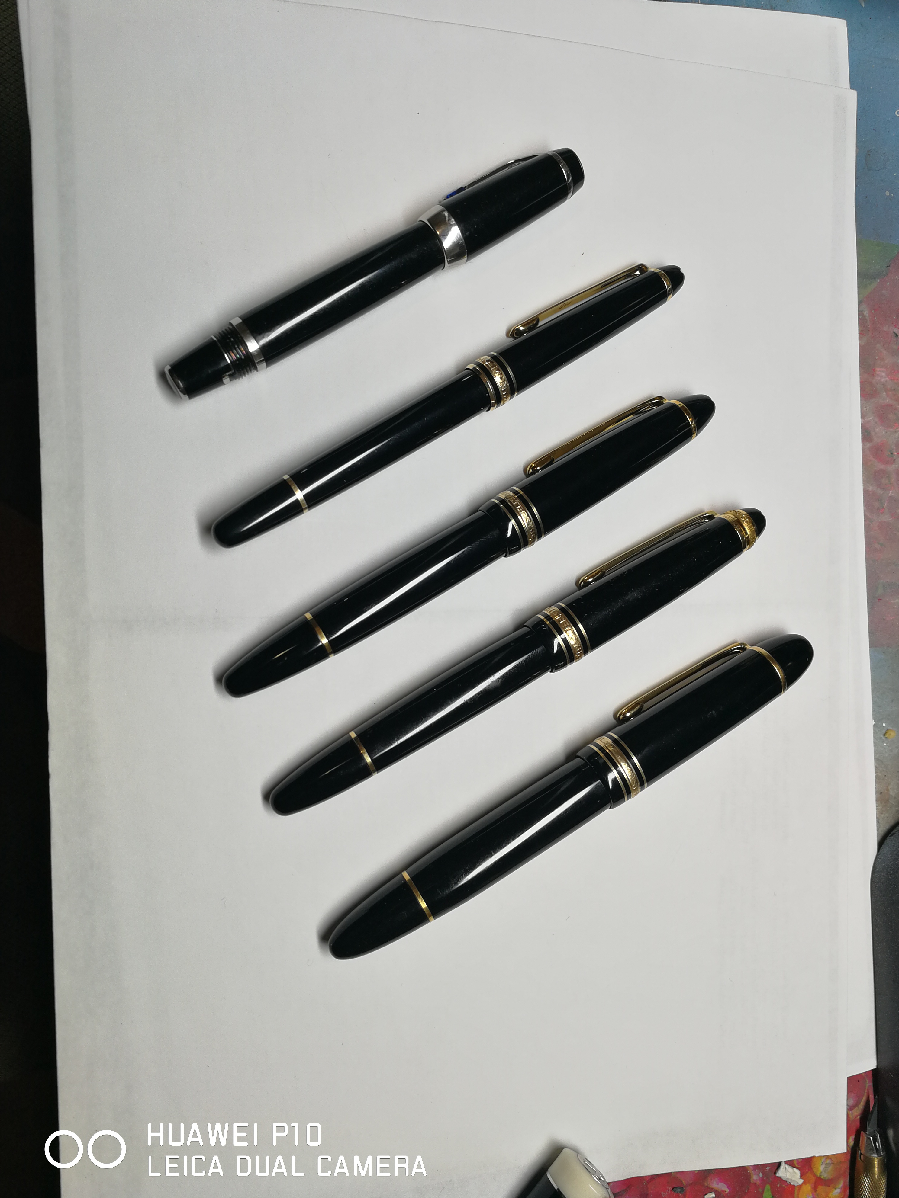 Sperando che carica le foto, vi mostro queste belle ragazze germaniche, pur non amando particolarmente il marchio, queste in parte le ho "ereditate" dovremmo avere in foto, una 144, 146, 149, una bhoeme ( la piccolina con il pennino retrattile che reputo molto chicchettosa) e una 146 che deve essere una qualche edizione speciale per via di un brillantino sul cappuccio e la scritta "75 year of passion" e il caricamento avviene tramite una sorta di caricatore per le cartucce dove ve ne possono essere alloggiate due che appunto ho fotografato sullo sfondo anzi sicuramente qualche esperto può darmi maggiori informazioni.