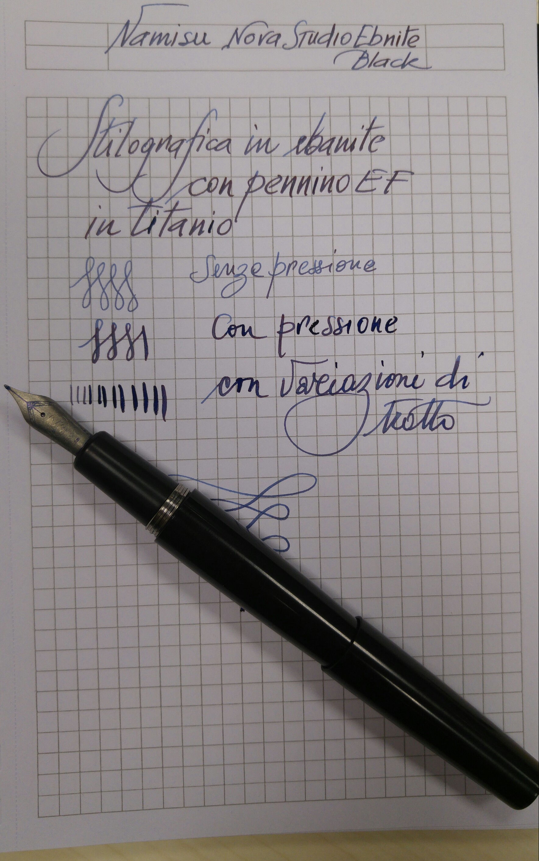 Anch'io sto usando il pennino nuovo in titanio EF (che poi tantissimo EF non è a mio avviso, ma è molto scorrevole); lo uso per scrivere il mio diario in piccolo ed in un corsivo fitto. Mi di premere non oso proprio. Mi accontento di stare il più leggero possibile, in quanto il flusso di inchiostro è abbastanza generoso, ma, complice il mio Lamy azurite, asciuga subito.