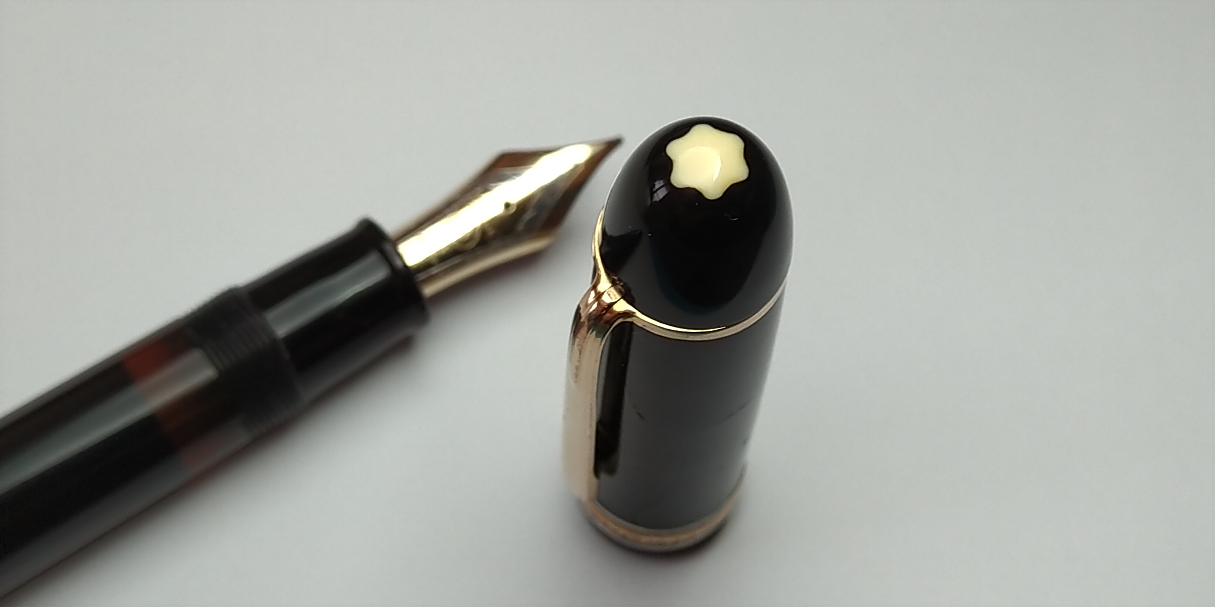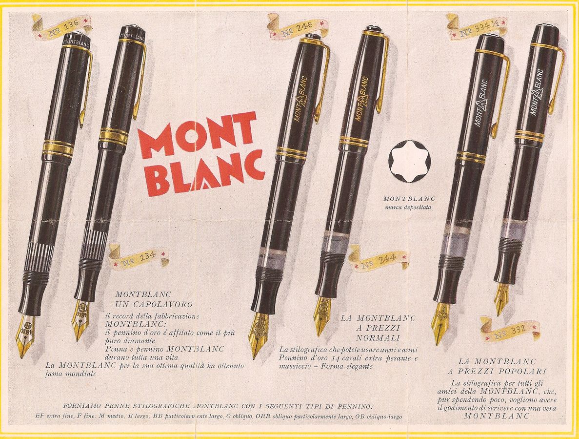 Ho sempre provato un certo attaccamento per il marchio Montblanc, da sempre è stata in qualche modo per me il massimo a cui potevo aspirare. Non so spiegarne il motivo, ma da piccoli si è sempre un po' affascinati da tutto ciò che è lussuoso e costoso, e la penna Montblanc era ciò che mi frullava in testa. Col tempo compresi l'eredità che questo marchio ha lasciato a noi appassionati, e nella mia mente la stella ingiallita prese il posto della candida stella bianca. Nel corso della mia esperienza ho avuto diversi incontri con la Montblanc, di seguito riporto quelli che sono stati i più significativi. Il primo fu una sfera (bisogna pur incominciare da qualcosa), di un bel bordeaux; era un presente da parte di una mia zia lontana, mi ricordo di averci fatto l'esame di terza media con essa. Ero elettrizzato, l'idea di avere una Montblanc tutta mia mi esaltava, in quel momento per la prima volta toccai la base del Monte Bianco. Da lì in poi ha inizio la scalata: la mia prima stilografica, una Starwalker Midnight Black, ancora la conservo gelosamente come uno dei gioielli più preziosi. Fu il mio caro papà a regalarmela, essa mi permise il primo contatto con un pennino Montblanc. Salendo ancora più in alto, la vegetazione comincia ad aprirsi, e le prime stelle alpine spuntano tra le rocce. La mia prima vintage è una di quelle stelle, una 332 regalatami questa volta da mia madre: con quella penna ebbi la prima esperienza con un pennino vintage, la cui dolcezza ancora oggi mi commuove. Durante il percorso incontrai altre vintage che però oggi non sono più con me. Salgo ancora più in alto e raggiungo la candida neve, come panorama ho in tutto il suo splendore la vetta del Monte Bianco. Riesco ad ottenere la mia prima Meisterstück vintage, una 142 veramente stupenda: nonostante l'incredibile bellezza del pennino, le sue piccole dimensioni non mi hanno permesso di apprezzarla come avrei voluto, ecco perché purtroppo non è più con me. Successivamente si palesa davanti al mio sentiero una Montblanc 149 degli anni 80: la grande emozione del ritrovamento si spense un poco quando la provai, pensavo fosse la mia penna perfetta e l'insoddisfazione che provai mi spinse ad andare ancora più in là. Dopo di essa, del tutto inaspettatamente vidi nella sua grandiosità quella che è la vera vetta della Montblanc: la 149 Masterpiece anni 50. L'emozione del momento unita alla precedente delusione mi portarono a dar via alcune delle penne più belle in mio possesso, al fine ottenere l'agognata penna; ammetto che non c'è occasione in cui non mi senta soddisfatto dell'acquisto. La considero, ora come ora, la penna perfetta per me sotto praticamente ogni prospettiva, ma di ciò ne parlerò in seguito. Per ora mi fermo qui, a godermi il ritrovamento.