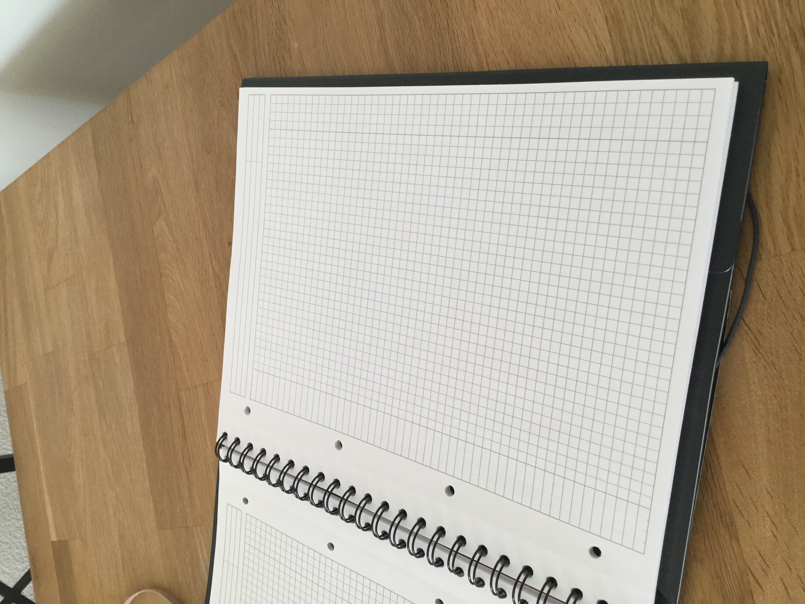 Ho un quaderno A4 della Oxford con 80 fogli, che mi hanno fornito in ufficio ma che non mi piace perché i quadretti sono troppo “pesanti”.