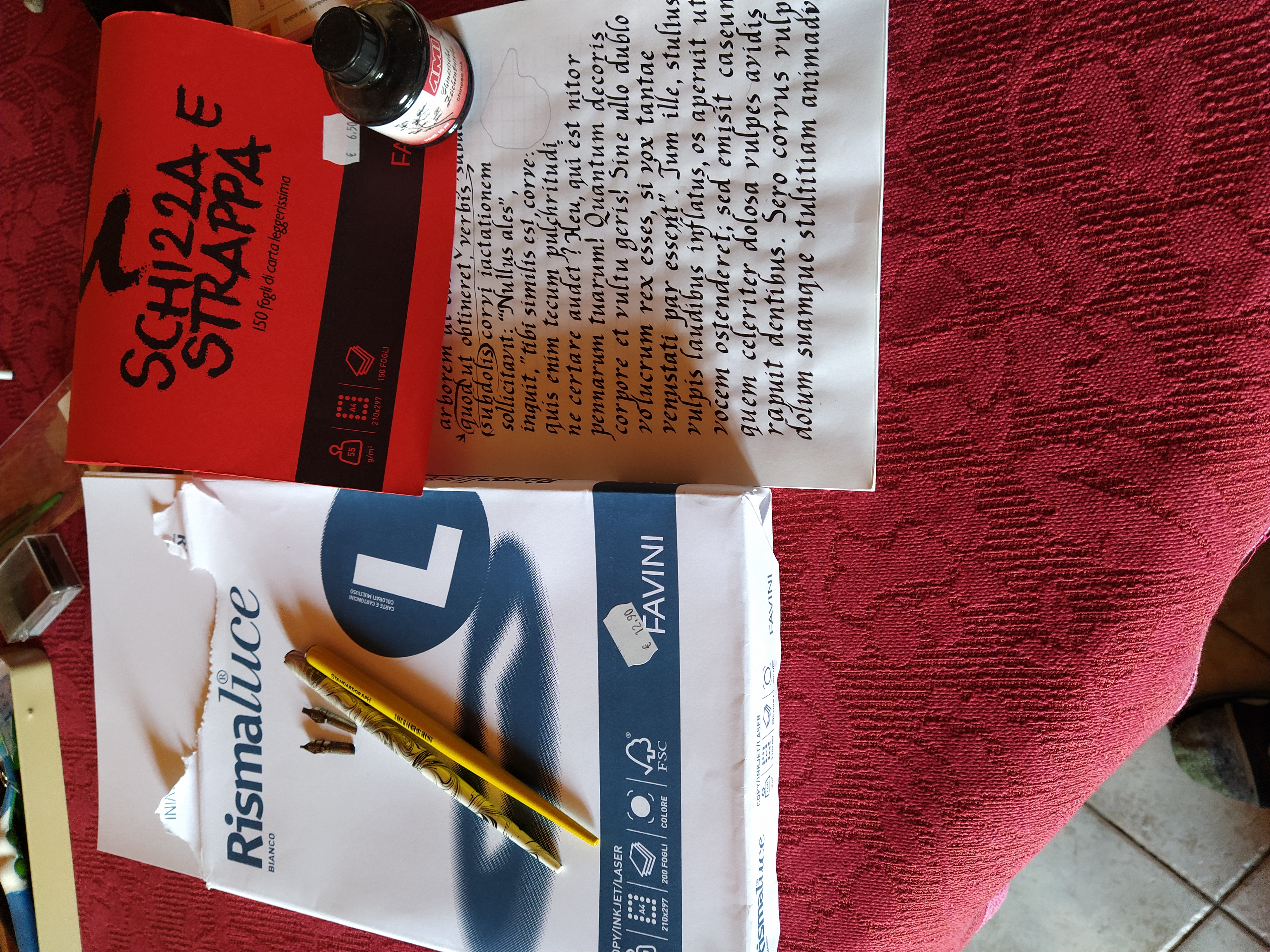 Prova a scrivere una stessa piccola frase sulla schizza e sulla rismaluce (e se ne hai su altro tipo, anche carta da pacchi) e verifica se ci sono differenze.