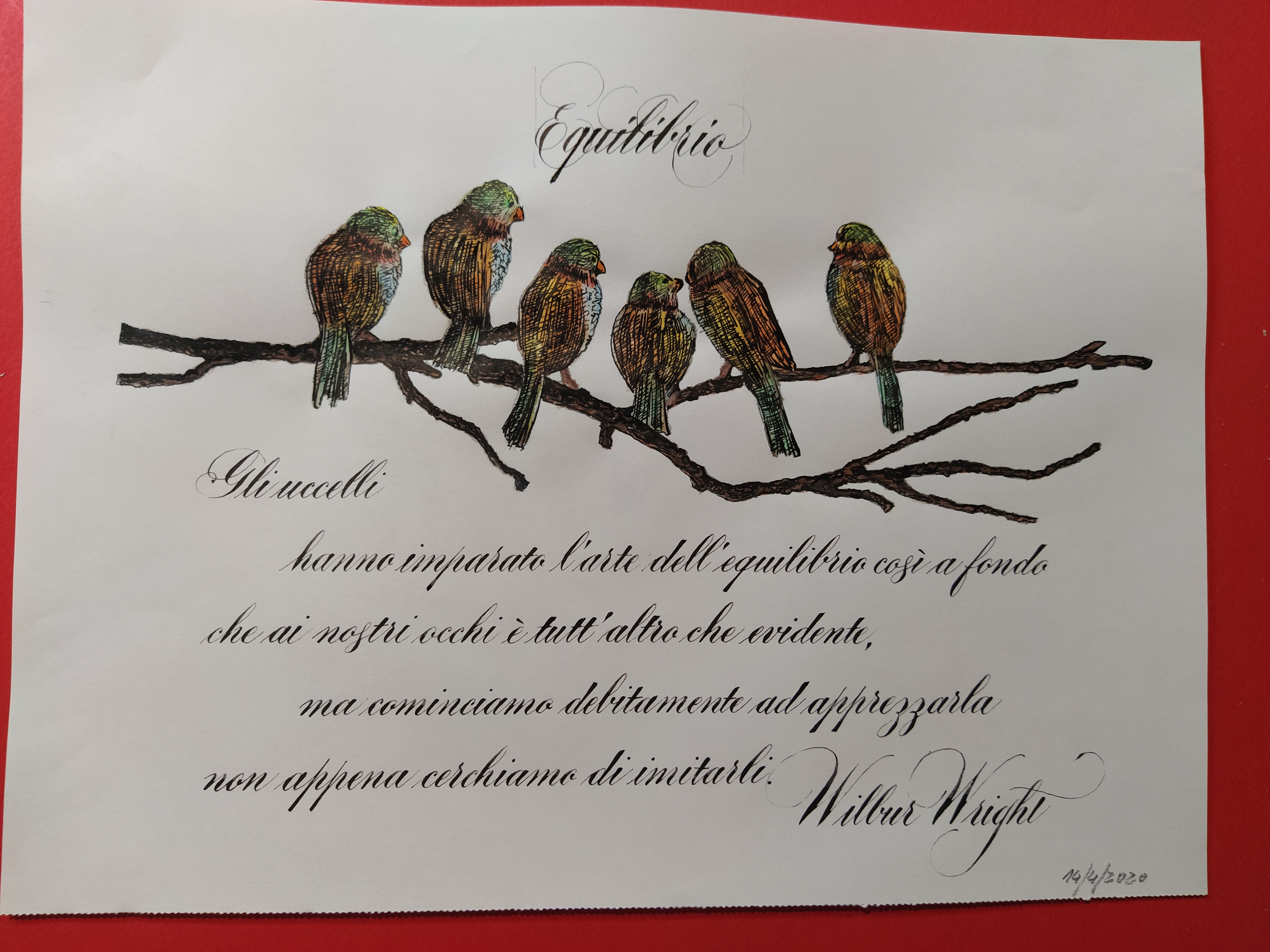 Un piccolo esperimento. Purtroppo non ho usato sufficiente cautela nel maneggiare il foglio durante il disegno e la conseguenza è che nello scritto l'inchiostro non ha avuto presa uniforme nelle varie zone.