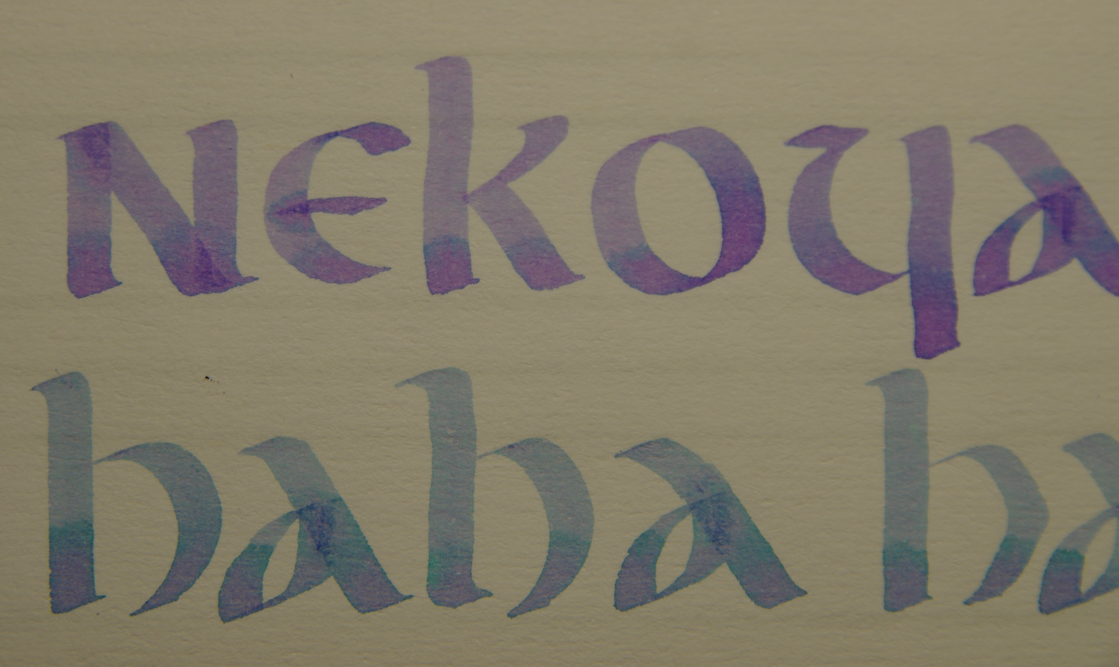 E... so che a te gli inchiostri ti piace provarli cosi e fanno il loro effetto ma ehm... provati anche su una penna normale oltre che su una parallel cosi' vediamo cosa esattamente risultano all'uso normale?