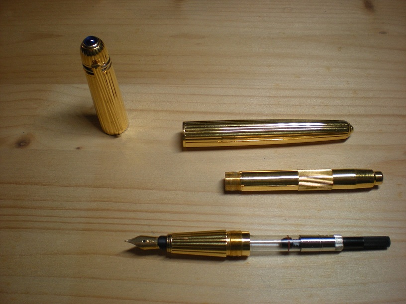 Allora temo che mio padre dovrà accontentarsi dell'adattamento che gli ho fatto con una comune cartuccia pelikan vuota, opportunamente schiacciata (facendo attenzione che non si crepasse) e successivamente appunto riempita con siringa; infine tenuta in posizione nel porta cartuccia da uno spessore.