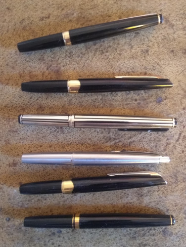 - Da sin: pilot elite, platinum pocket, platinum pocket metalizzara, pilot myu, platinum pocket e pilot elite