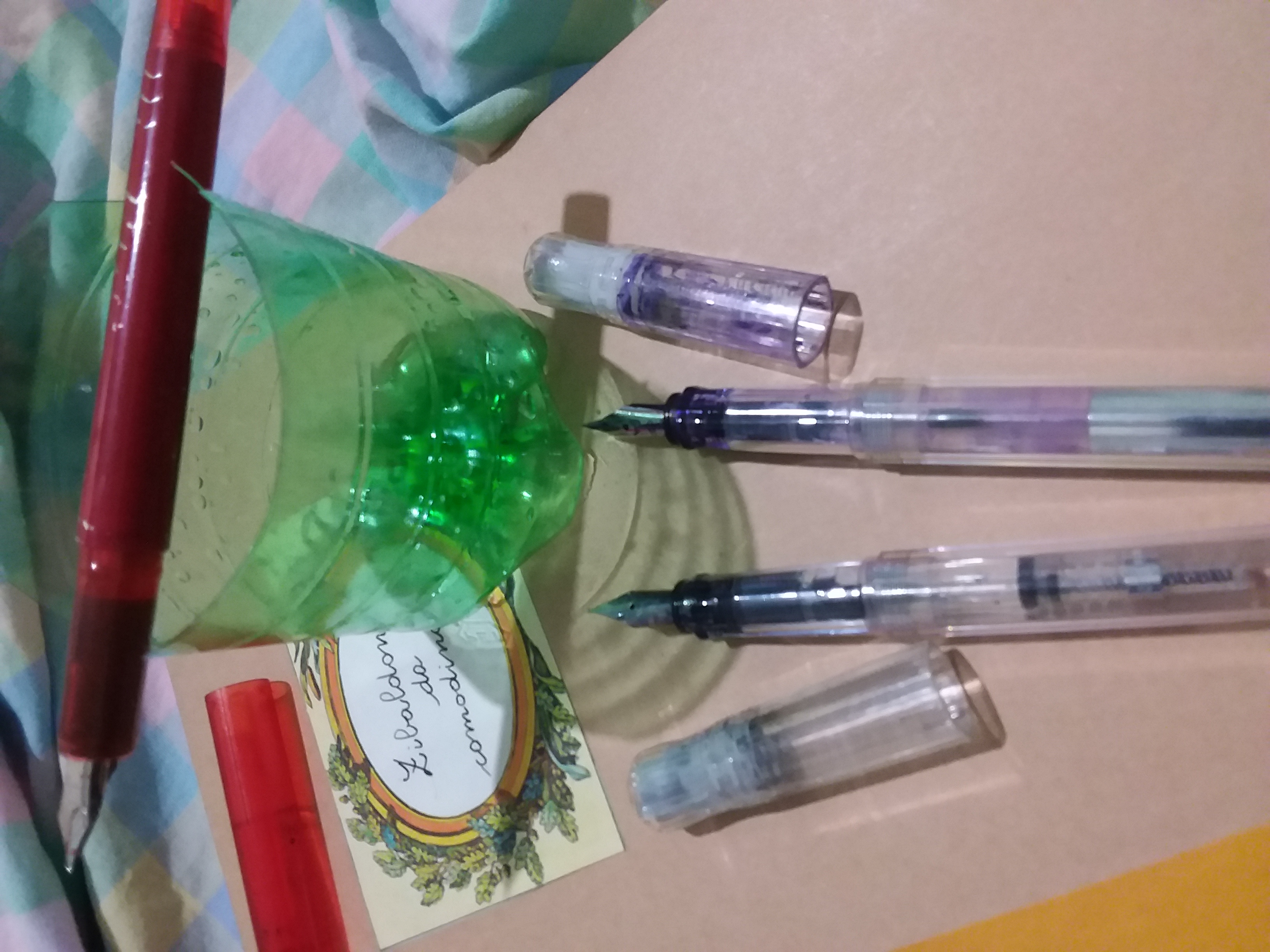 Le tre penne in foto sono state lavate tenendole per ore a mollo in acqua tiepida e detersivo per piatti. Quale di esse ha contenuto e lavorato per mesi con La Reine Mauve? :lol: