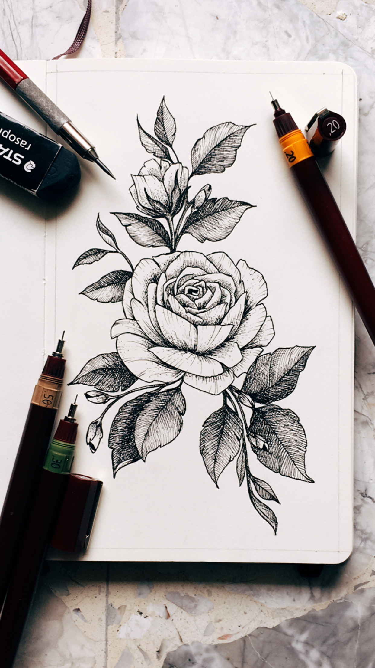 Anche io amo disegnare usando le stilografiche e i rapidograph che mio padre usava per disegnare i progetti su carta lucida (io ho recuperato i rapidograph li ho puliti, sistemati e sostituito le punte la' dove andavano cambiate perché intasate di inchiostro indurito o rovinate)amo disegnare usando la tecnica del tratteggio e dei puntini che mixati creano delle sfumature modulari meravigliose .....purtroppo tra università , lavoretti fotografici, il tempo che dedico al disegno è sempre poco, anche perche' quando posso preferisco esercitarmi nella scrittura e nella calligrafia ma ogni tanto realizzo qualche piccola composizione giusto per non perdere la mano ehehe...