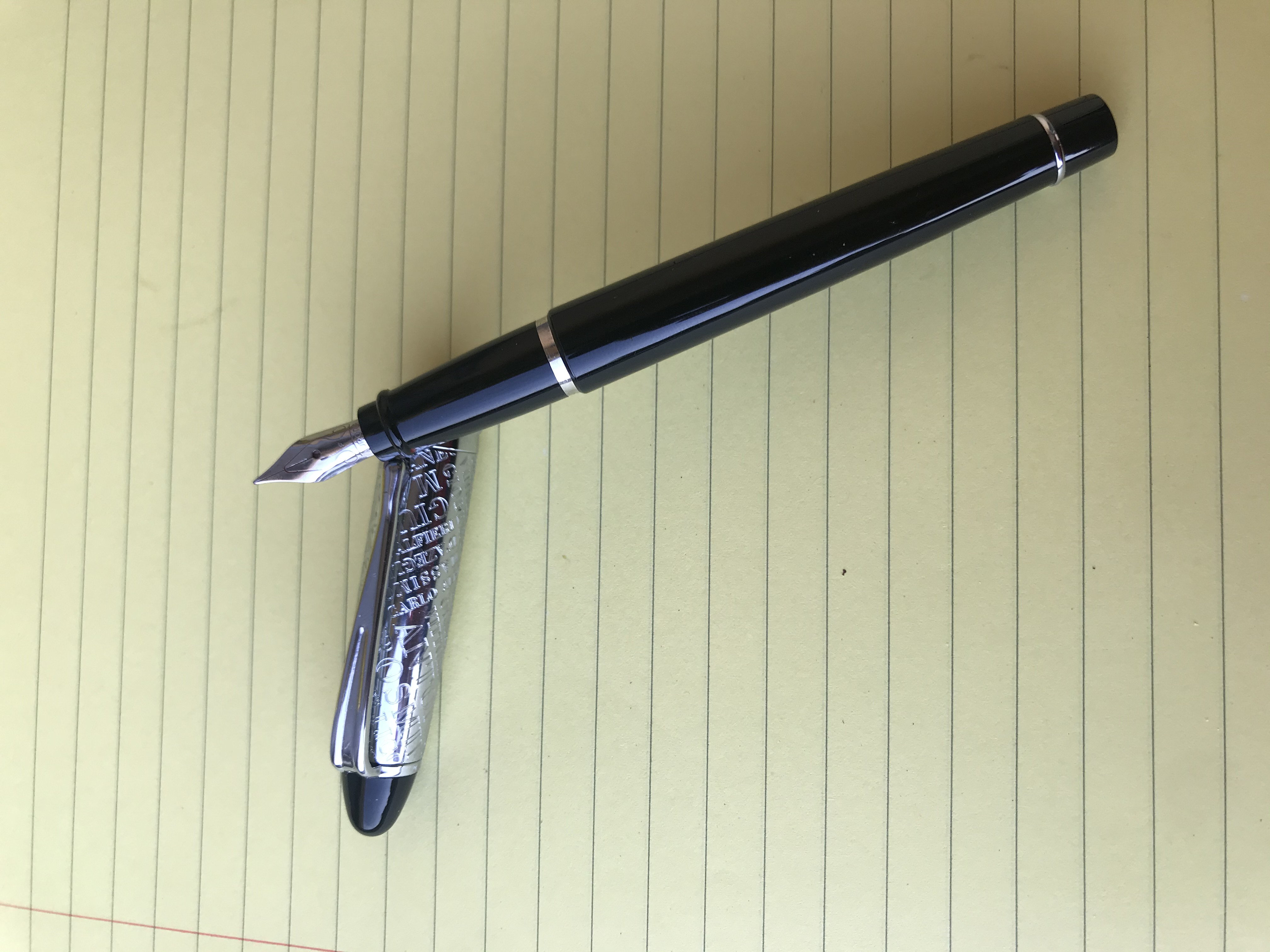 Una Laban in metallo che pare argento con un bel pennino in acciaio esteticamente piacevole anche Lei con tratto di giusta dimensione e che scrive con qualunque inchiostro senza fare una piega.