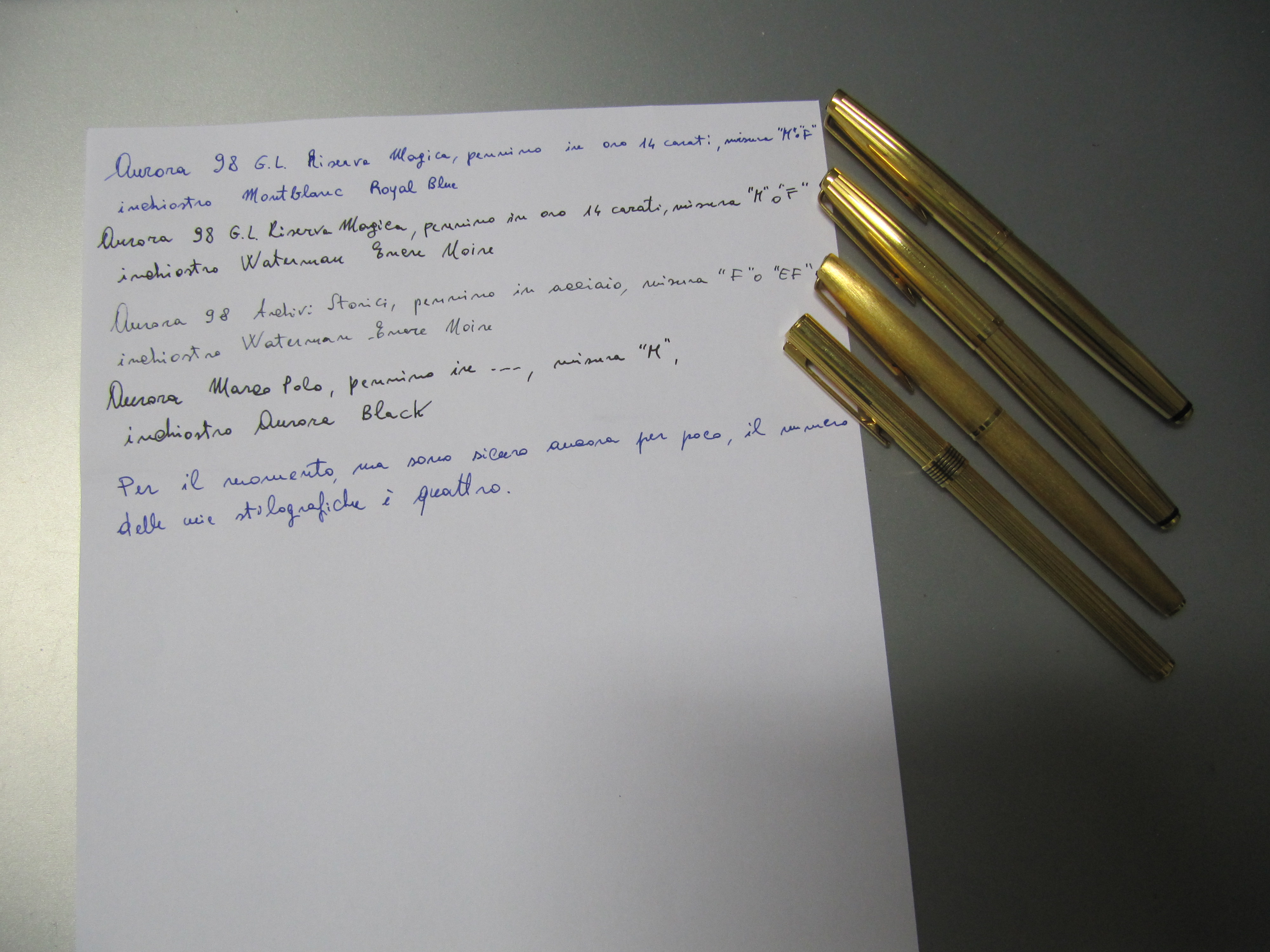 Vorrei acquistare un blu da utilizzare con una penna stilografica Aurora 98 Riserva magica che nei prossimi giorni dovrei riuscire a rimettere a posto.