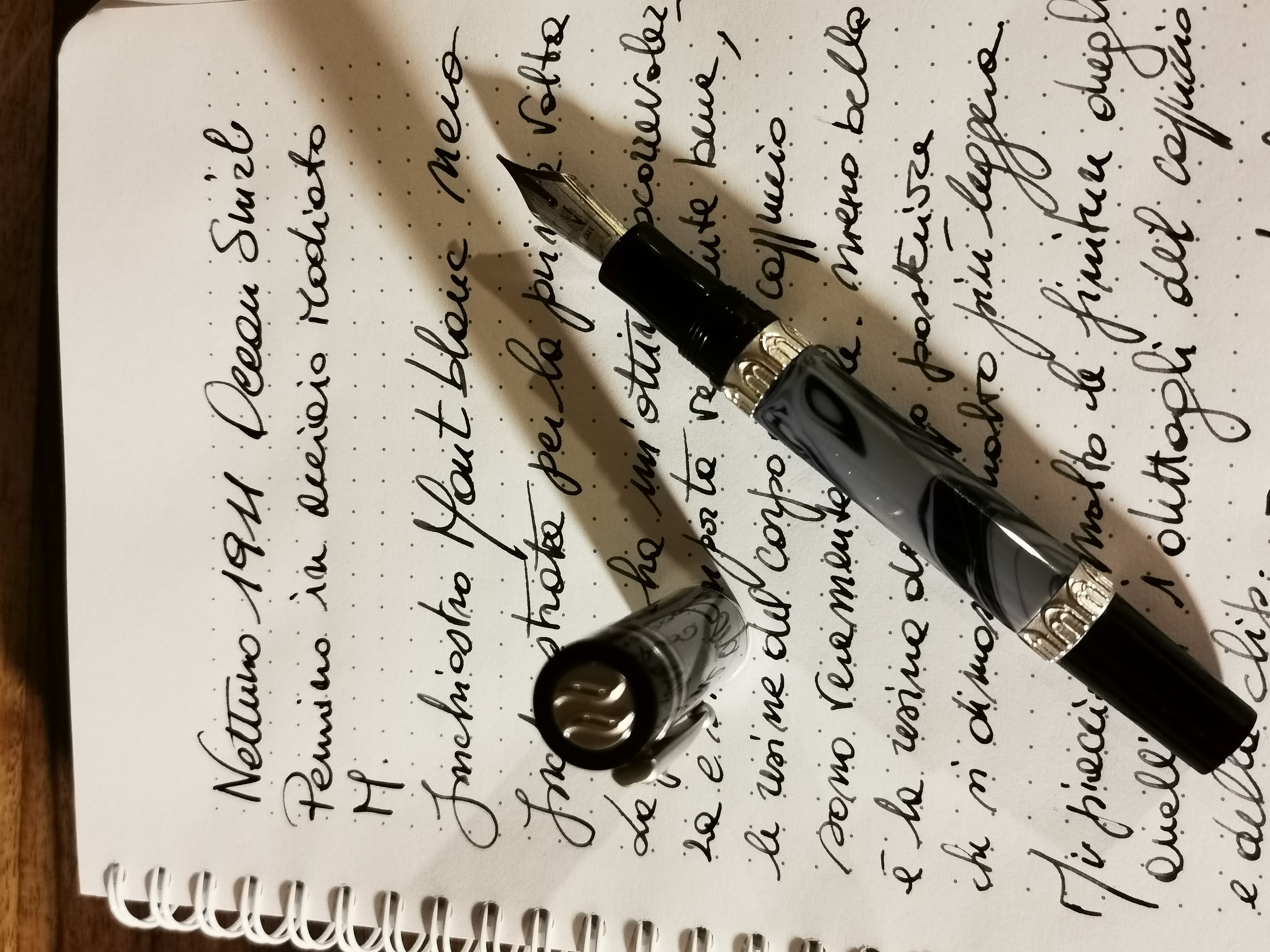Ho inchiostrato la penna con il mio Nero Montblanc (che però è diventato tendente al grigio... devo trovare il modo di smaltirlo) e ho iniziato a scriverci.
