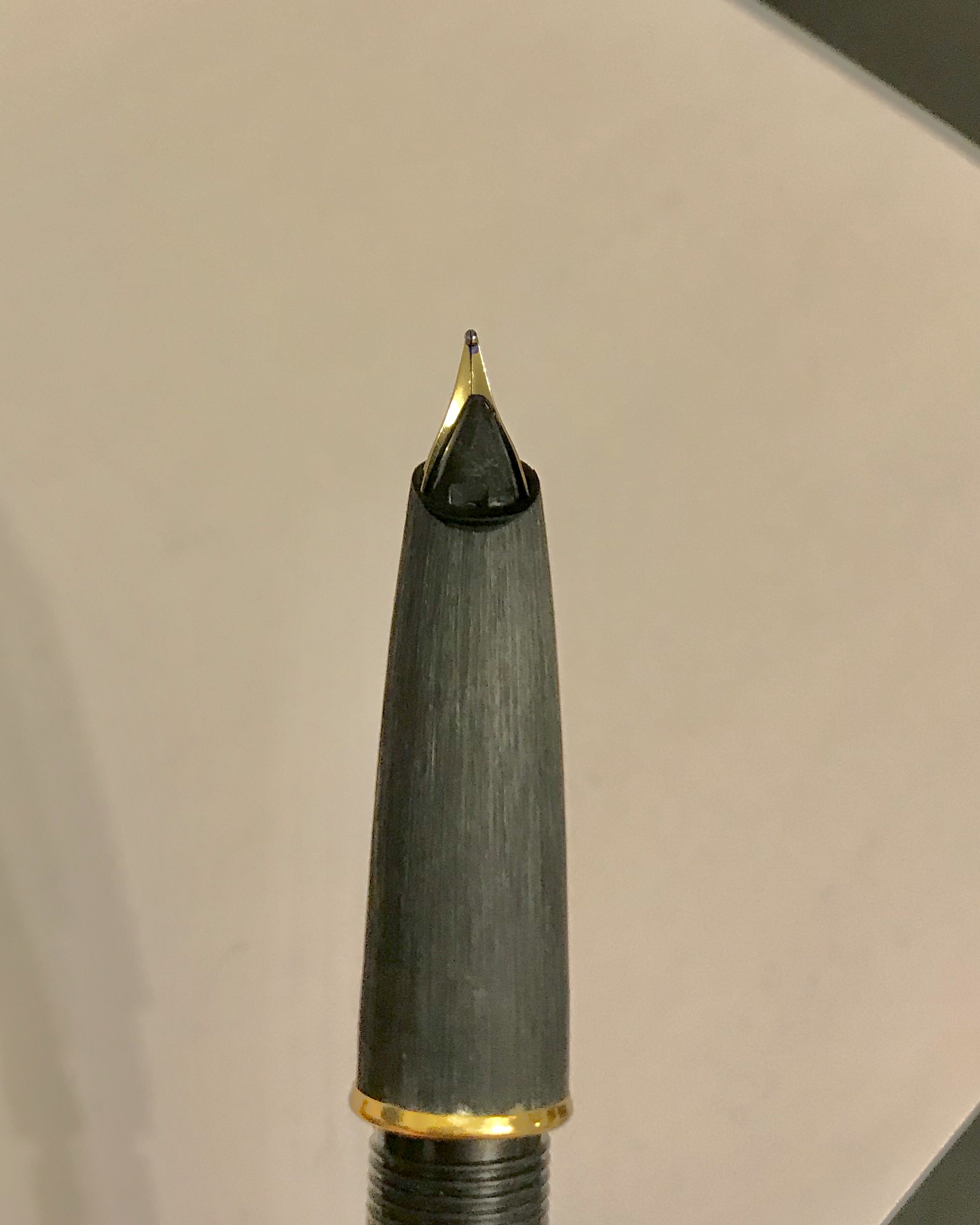 . anche questa (mi è capitato la settimana scorsa con una sheaffer targa ecco perché deja vú) mi è arrivata in ottimo stato ma con l’alimentatore storto rispetto al pennino. L’ho pagata meno di 40 caffè ma mi rode un pochino.