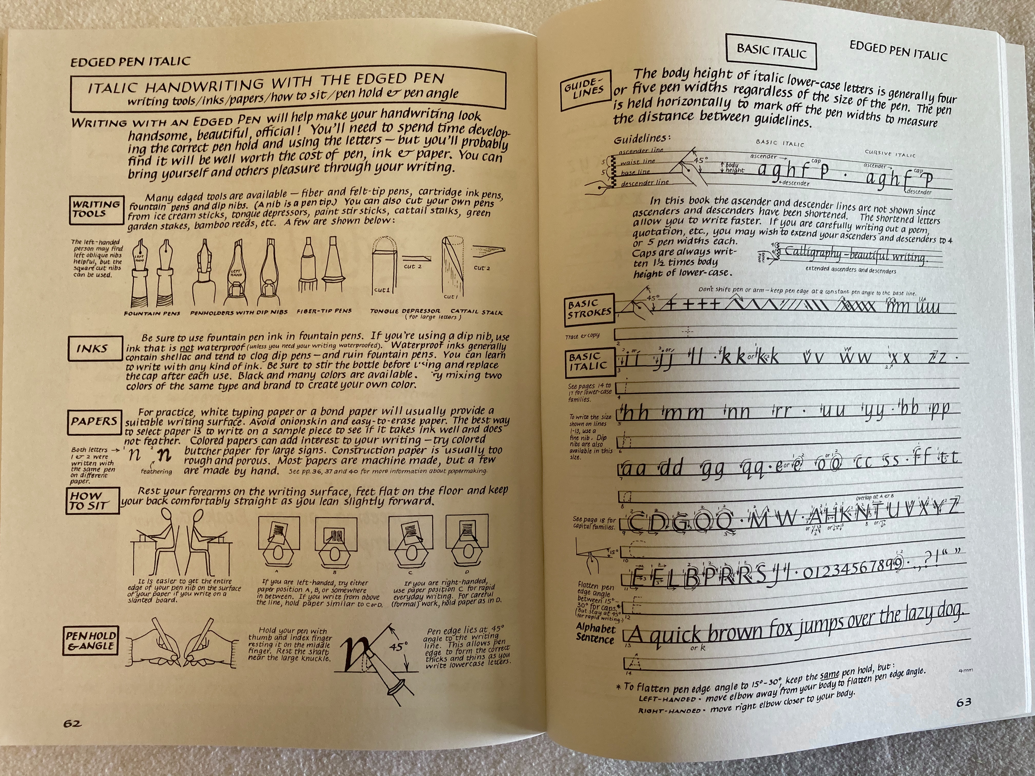 Alla fine si può scegliere il libro in questione oppure il manuale di cancelleresca di Reynolds e - senza usare pennini tronchi ma una semplice penna o una matita - ci si può ispirare a quel riferimento per lo schema base che dia l'impostazione corretta alla propria grafia. Lo si può fare anche con altri stili: la Scrittura italiana, il corsivo inglese, il Palmer, etc.