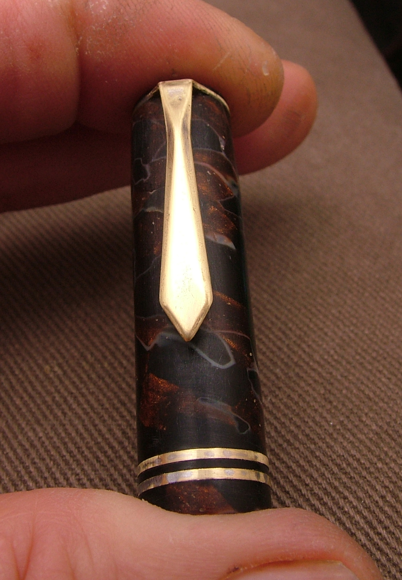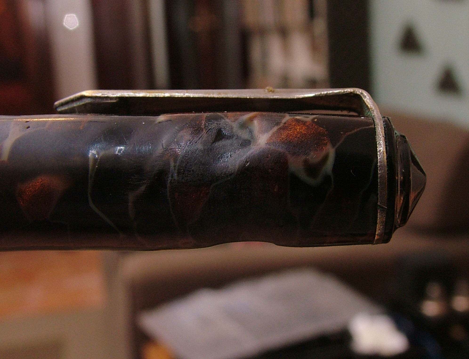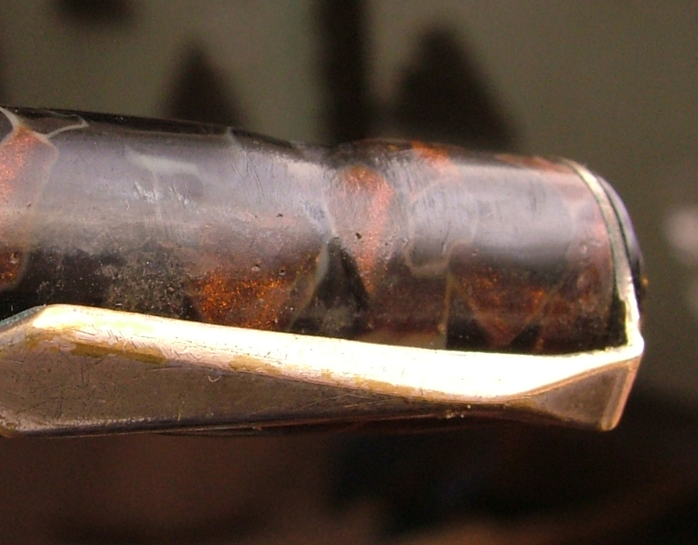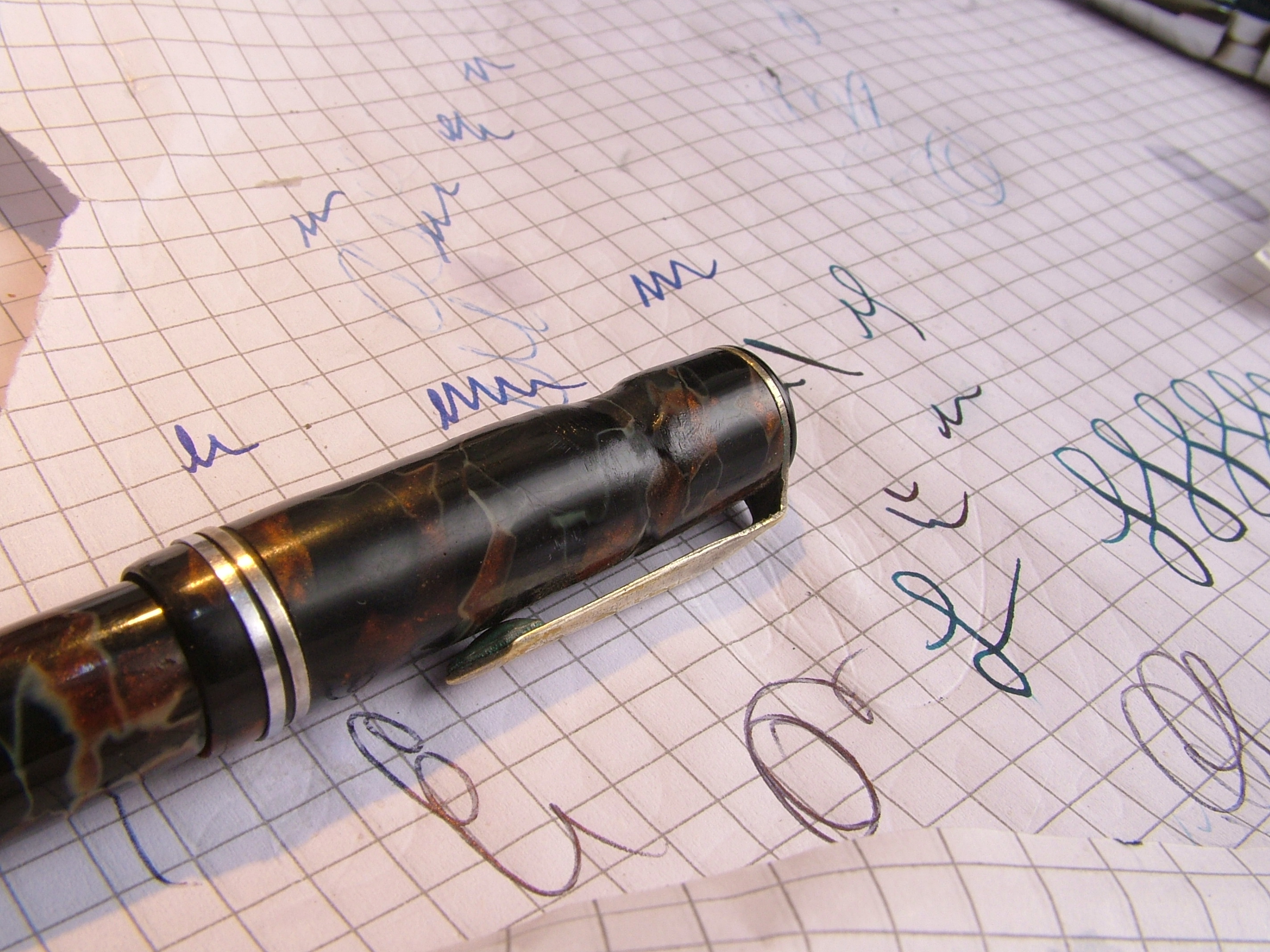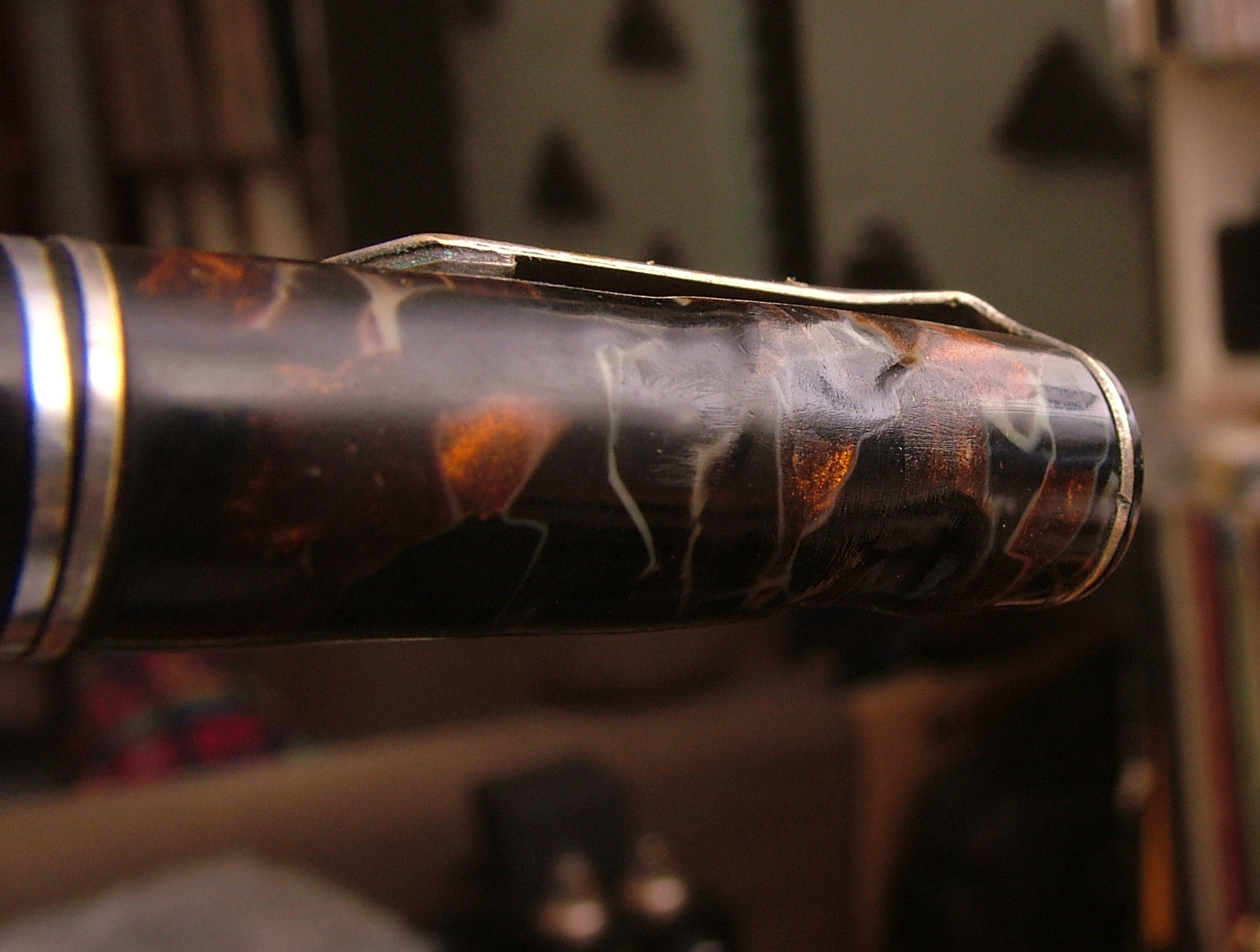 Convinto che la penna fosse in celluloide lucido e rodio la clip gli anellini e la levetta, poi risciacquo, neanche il tempo di lavarla che il materiale diventa spugnoso e caccia dei bozzoli.