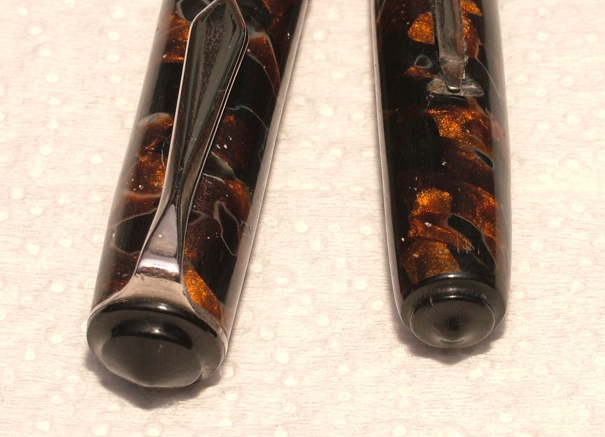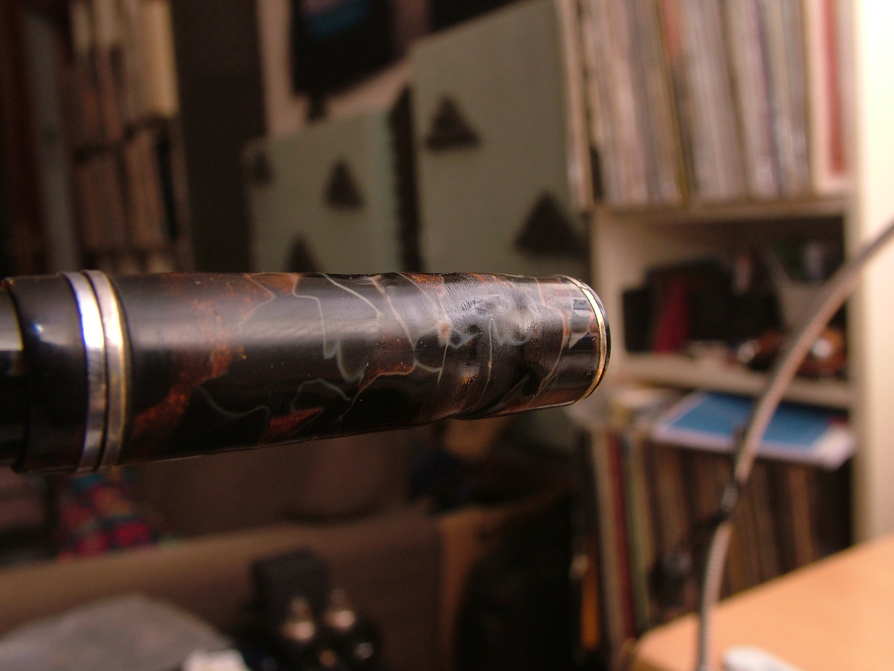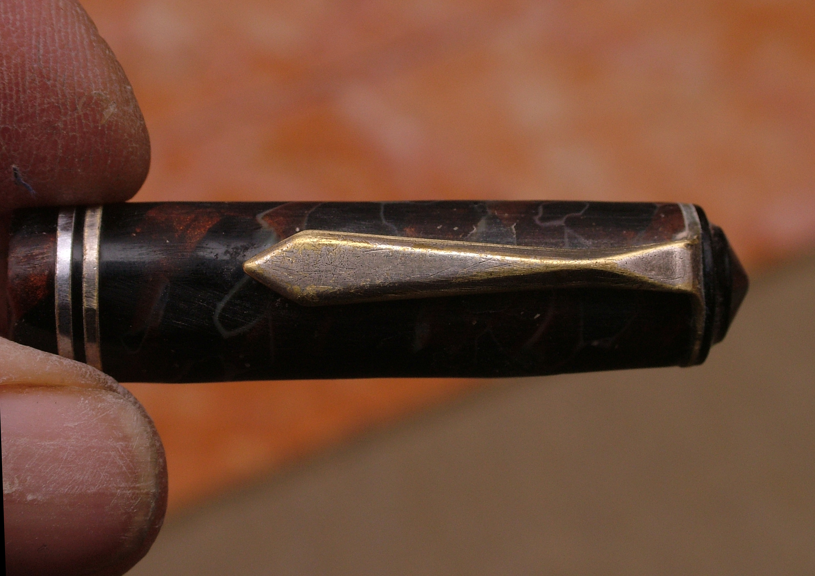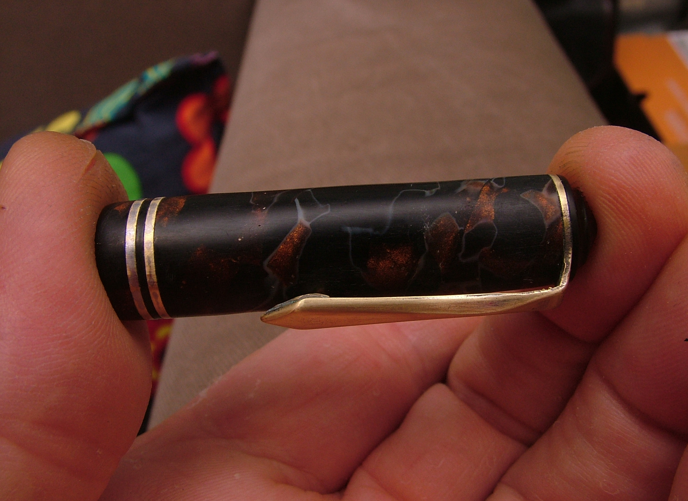 Convinto che la penna fosse in celluloide lucido e rodio la clip gli anellini e la levetta, poi risciacquo, neanche il tempo di lavarla che il materiale diventa spugnoso e caccia dei bozzoli.