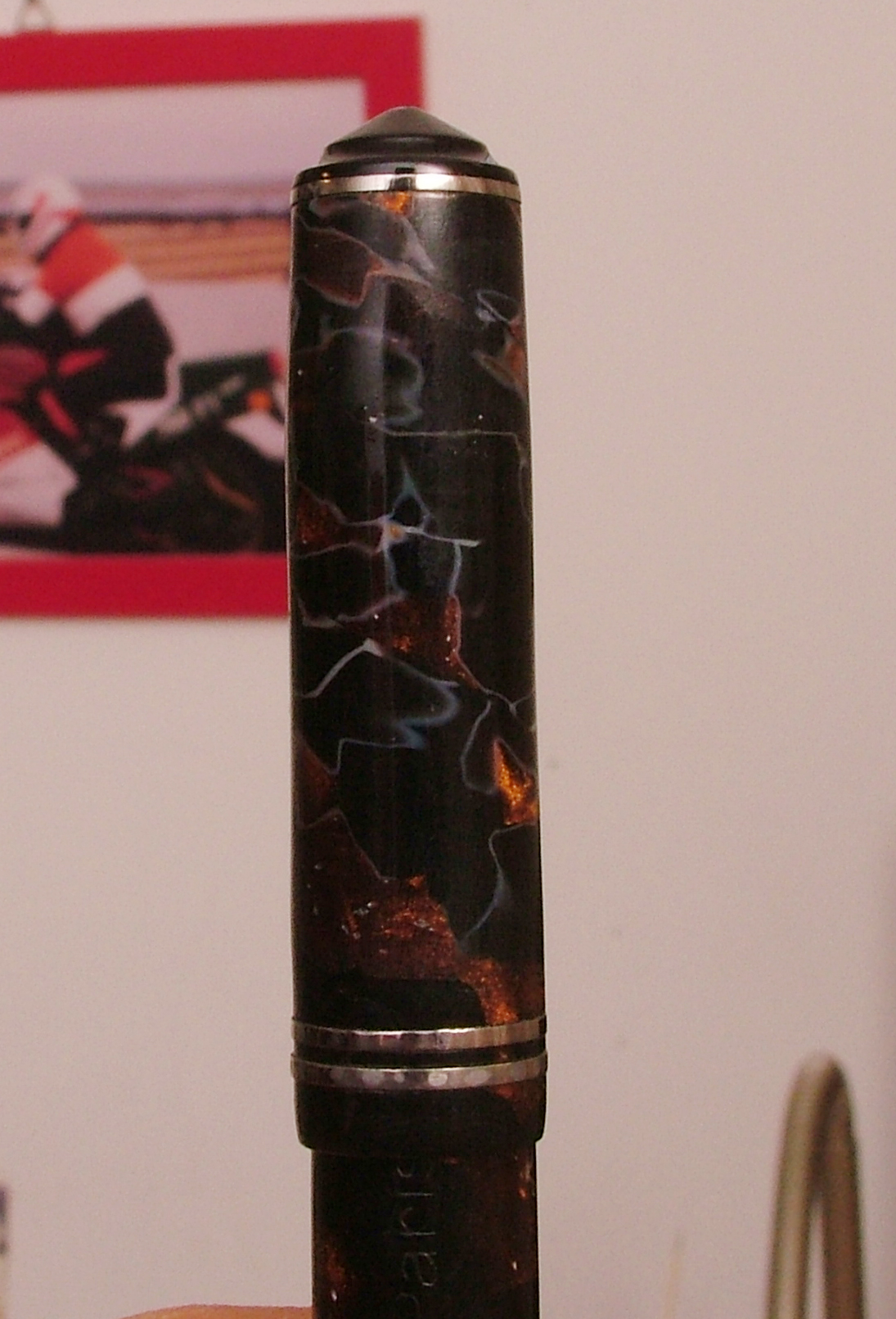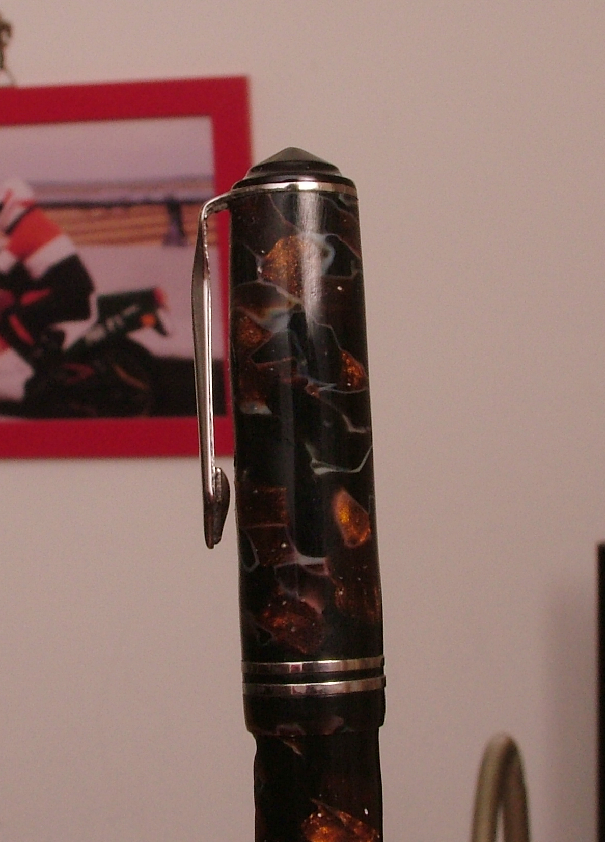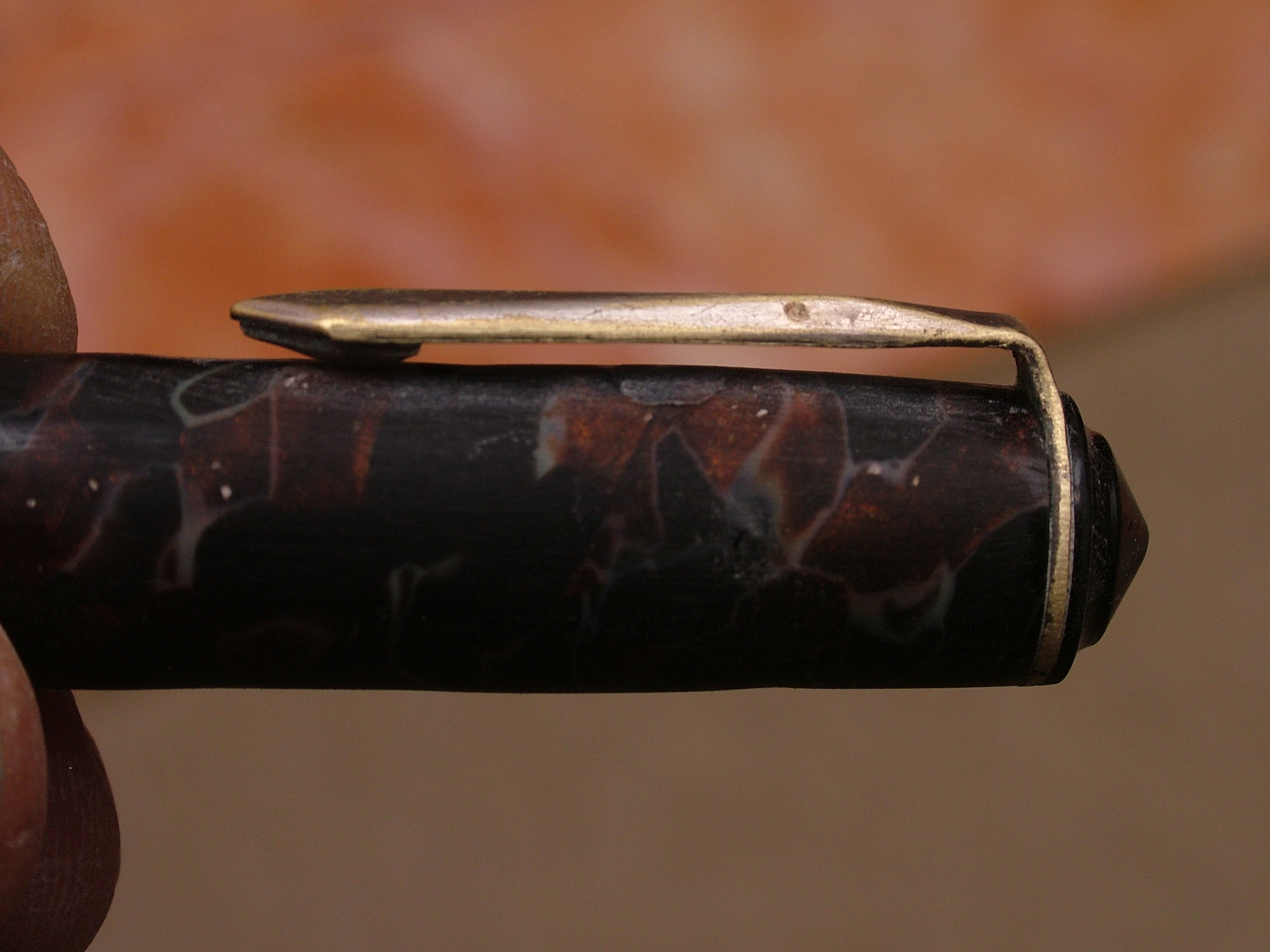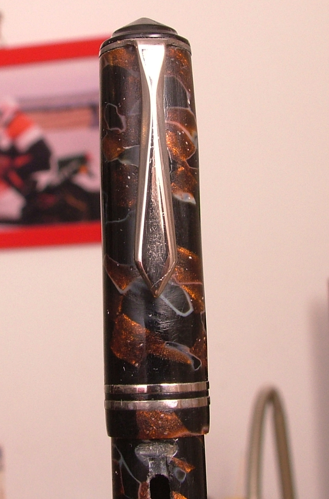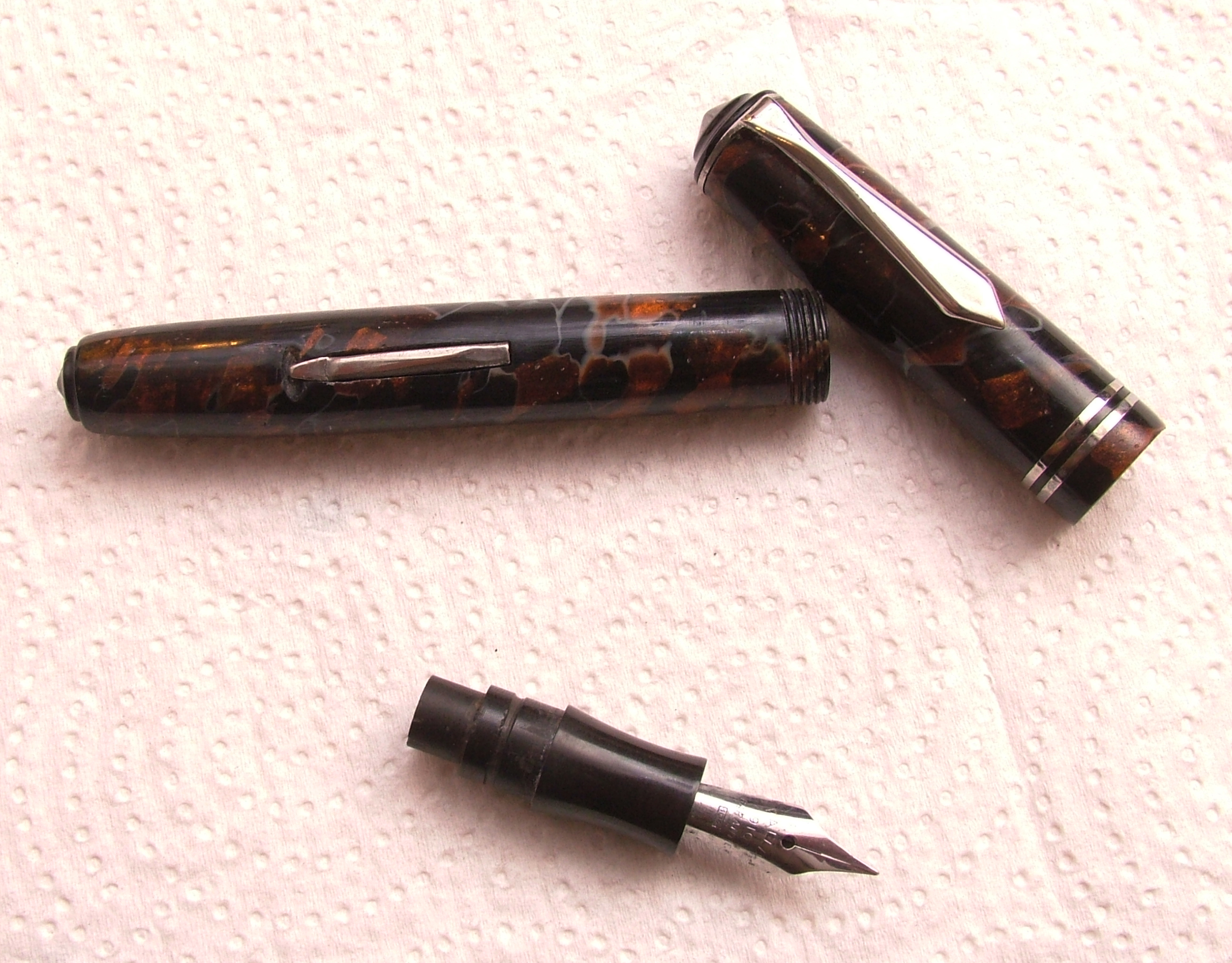 Questa penna è presente tra le foto della marca su wiki, ma in condizioni migliori, evidentemente deve essere stata a contatto con l'acqua, la penna non è in celluloide come immaginavo.