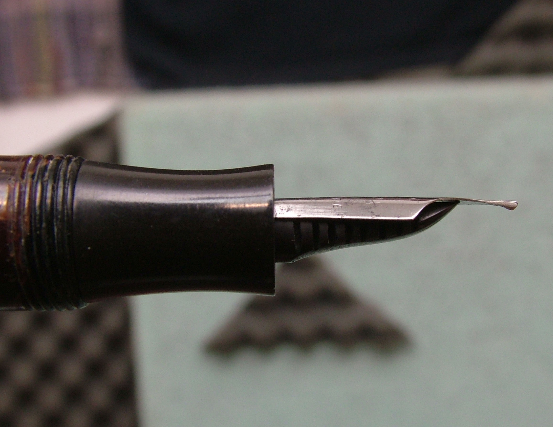 Erano anni che avevo questo rottame per pezzi di ricambio, solo clip ,sezione, alimentatore e pennino utilizzabile. Il resto tutto da buttare perchè deformato in modo irrecuperabile.
