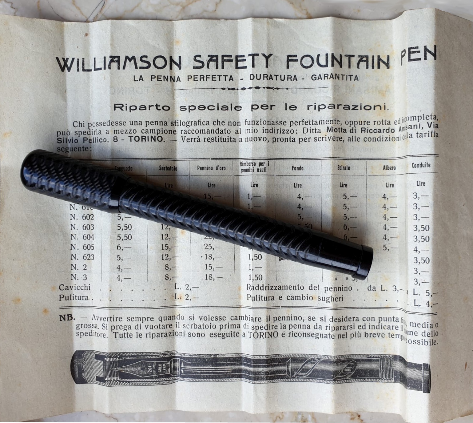 Che storia particolare quella delle Williamson di Settimo Torinese! a quanto pare si era specializzata nella produzione di ottime imitazioni delle Vacumatic e delle Parker 51...