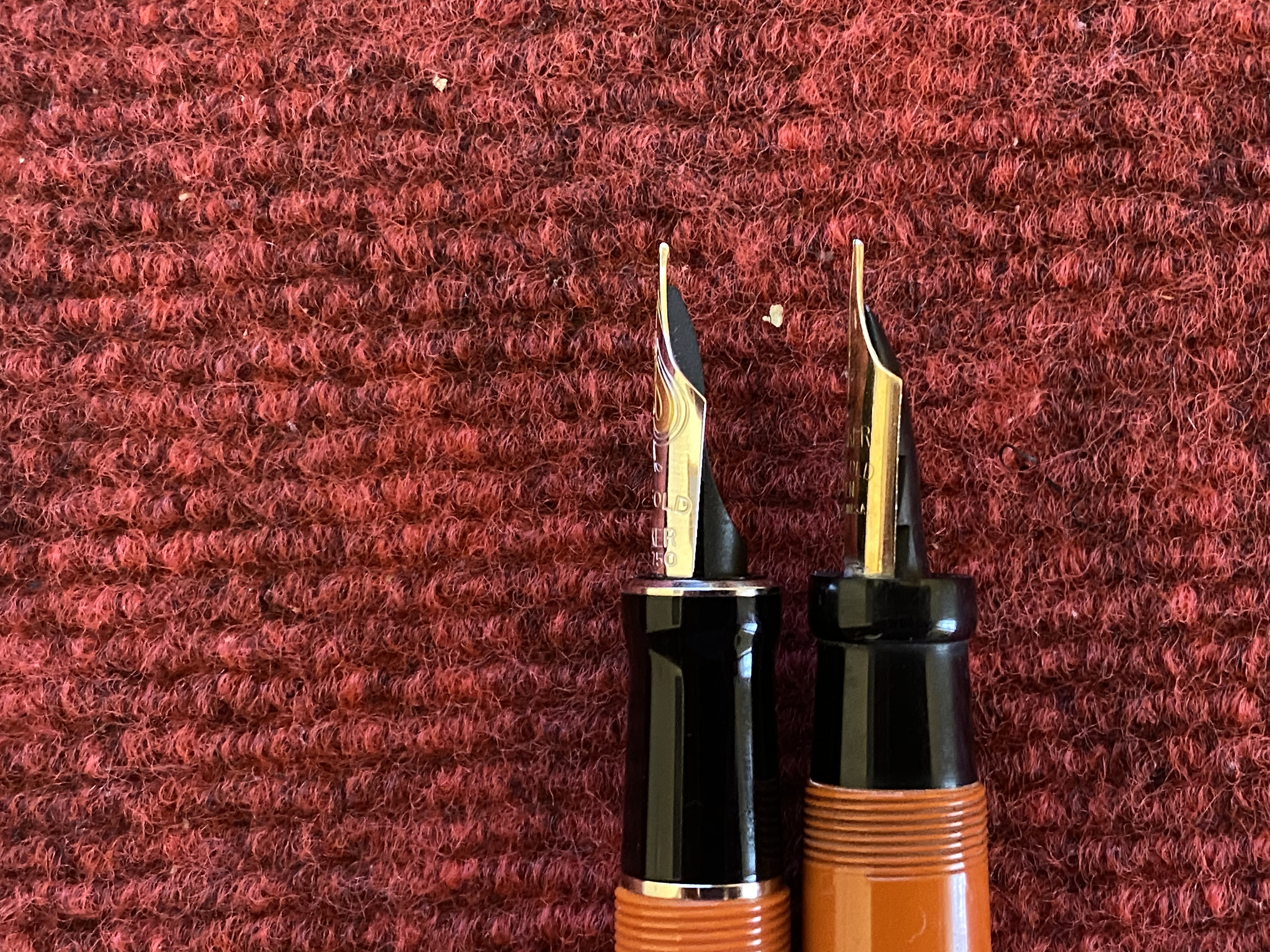 Design: qui vince la progenitrice, ma la moderna non scherza affatto, si vede la discendenza. Però che dire del pennino della moderna, mica male?