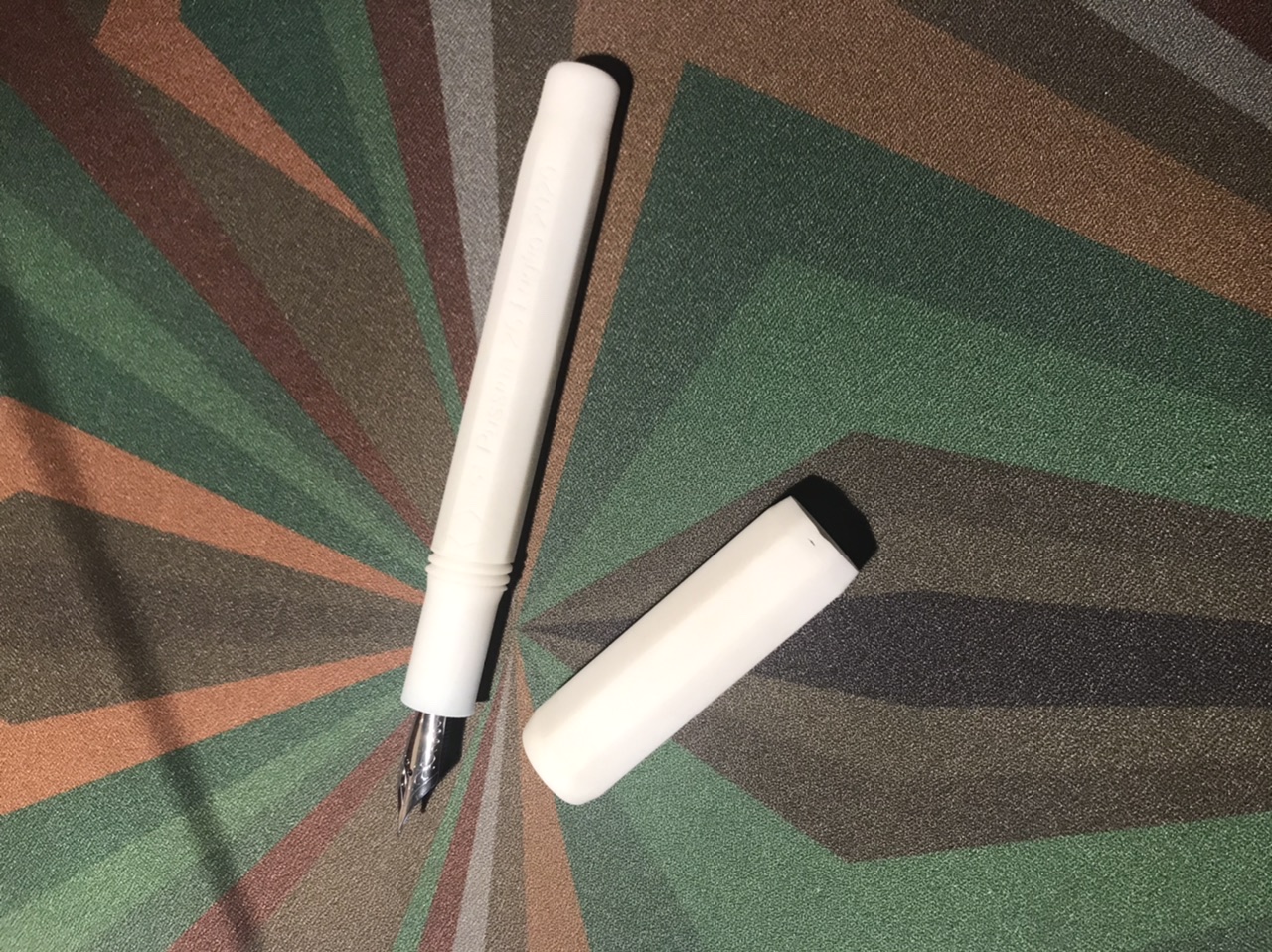 La penna è arrivata in una custodia esagonale dello stesso materiale, ancora da perfezionare nei sui particolari, ma molto simpatica come idea.