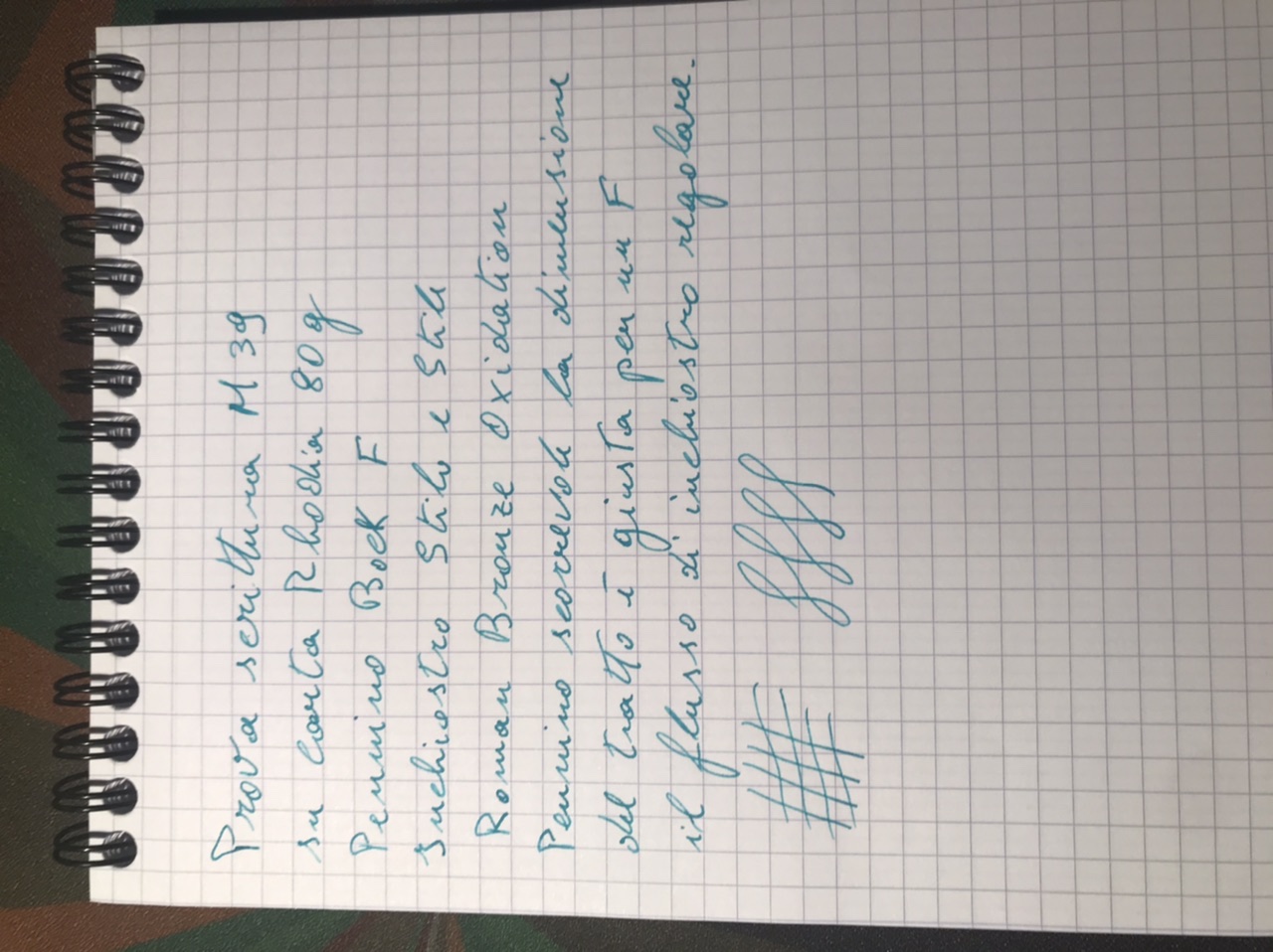 Sul pennino non c’è molto da dire è un Bock credo n.6 misura F con le caratteristiche tipiche di questa marca, nel mio caso è andata bene ed è uno di quelli scorrevoli e precisi, l’afflusso di inchiostro è regolare e senza incertezze, la dimensione del tratto la trovo adeguata per la misura del pennino ne troppo sottile ne troppo largo.