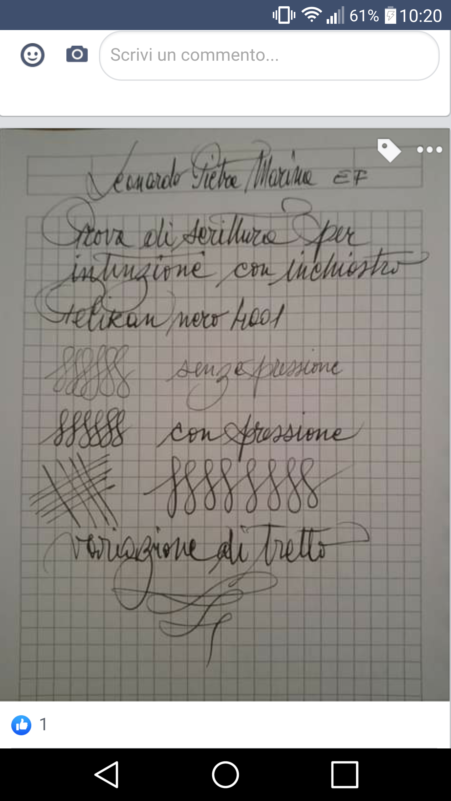 Che misura hai scelto Francesco? Posso chiederti una foto di una prova di scrittura (senza fretta ovviamente eh!)?francoiacc ha scritto: ↑mercoledì 29 luglio 2020, 11:55 Il pennino in acciaio va benissimo, almeno sulla mia.![]()