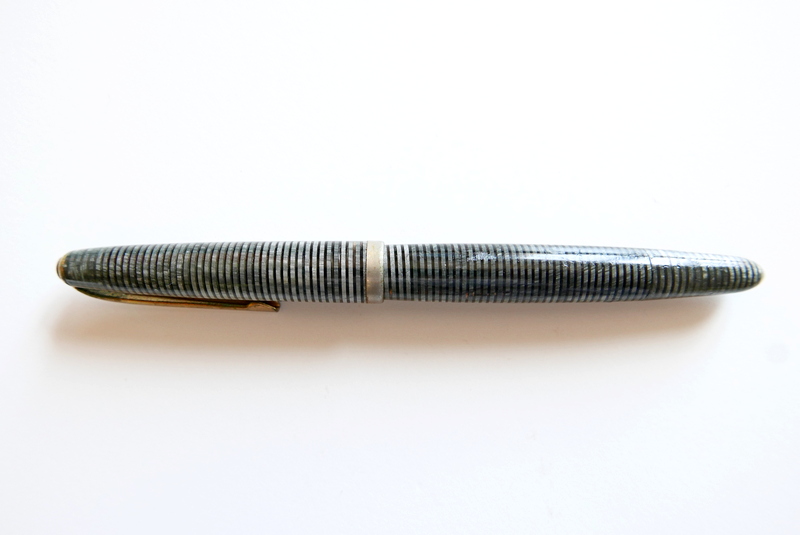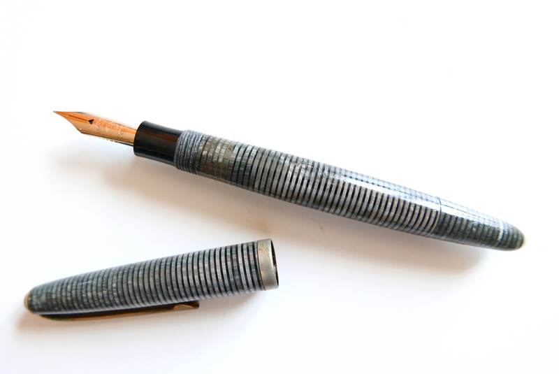 Salve, nella "scrivania delle meraviglie" a casa di mia madre ho trovato, oltre ad una Aurora 88K (che apparteneva a mio padre) e ad una Montblanc Carrera (di cui non conoscevo l'esistenza), la penna che mi fu regalata in occasione della mia prima Comunione. Allora non la apprezzai per niente perchè mi sembrava una penna "da donna", ma ora, considerato il mio recente ritorno di fiamma per le stilografiche, mi piace proprio ed ho cercato di rimetterla in funzione.
