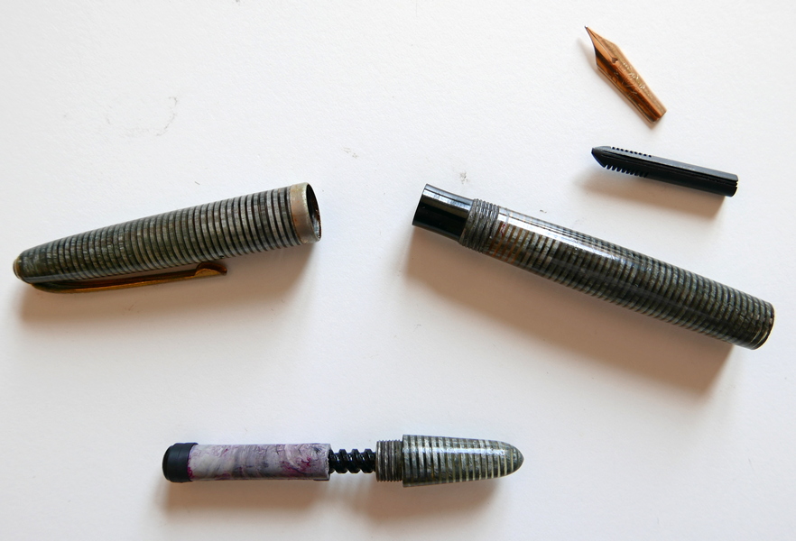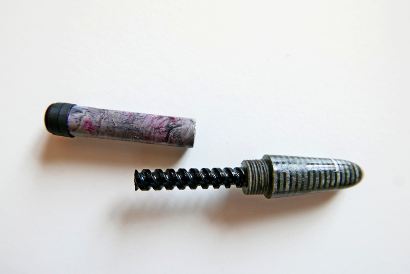 ed ho trovato la vite e il pistone incollati. Con svitol sono riuscito ad estrarre la vite dal pistone ma la penna non caricava. Il meccanismo è piuttosto rudimentale e, mi pare, soggetto a deteriorarsi.