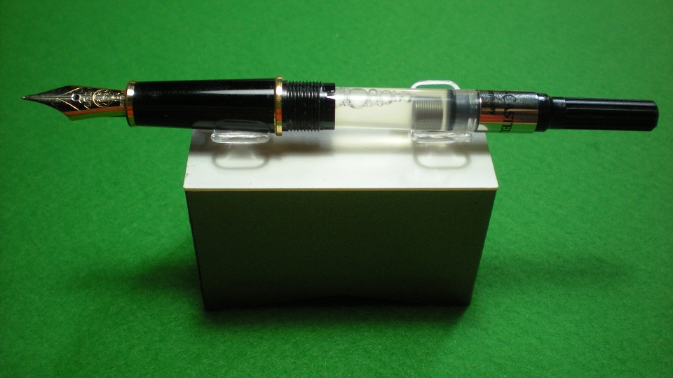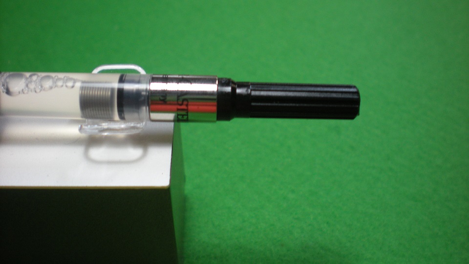 questo è l'avvitamento con il convertitore modificato. Ho scelto il Faber Castel per via della molla interna. Con il taglio della manopola non c'è il pericolo di perdite d'inchiostro dal momento che molti convertitori da quel lato sono già aperti di "fabbrica"